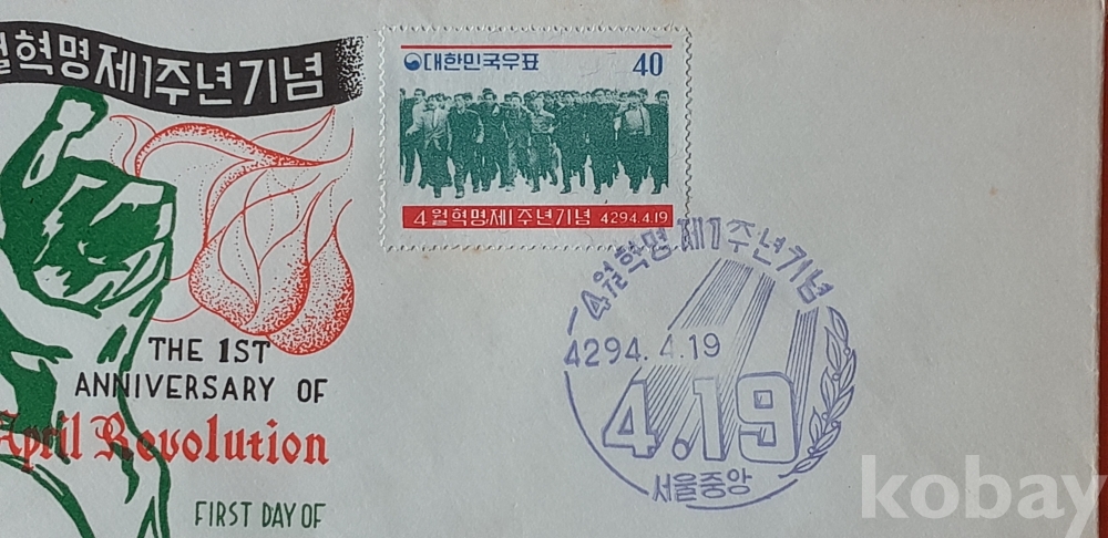 4월 혁명 1주년 기념 초일 봉피입니다.
