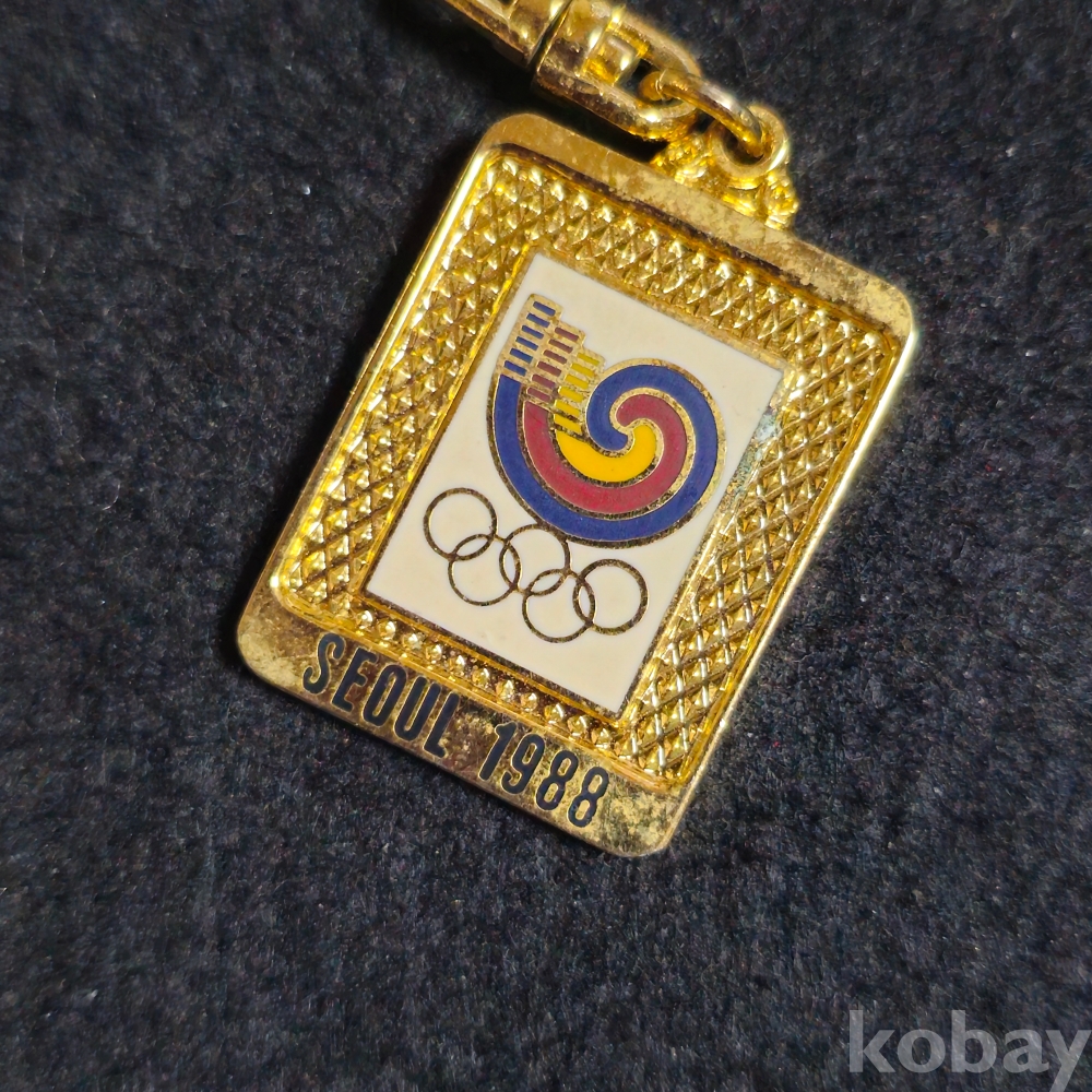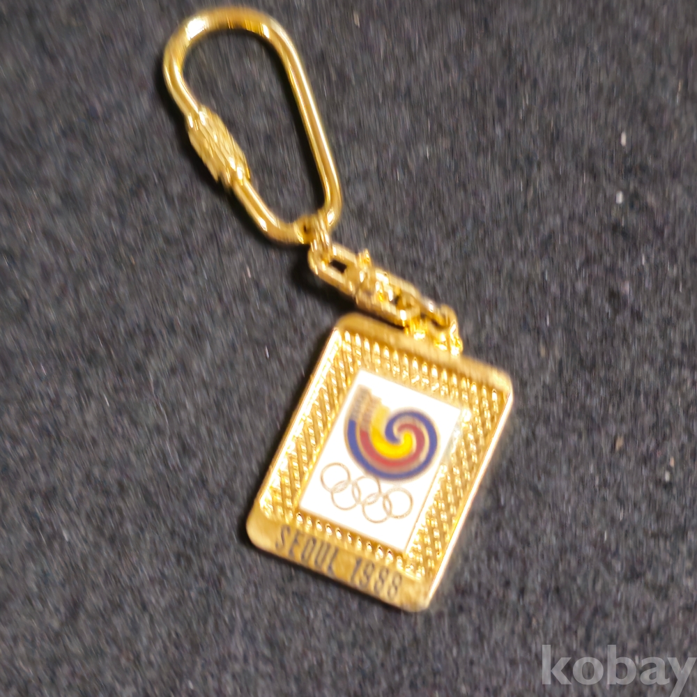 (((올림픽자료))) 올림픽 엠블렘있는 1990년 한일정공공장준공기념 금속 키홀더 (열쇠고리)