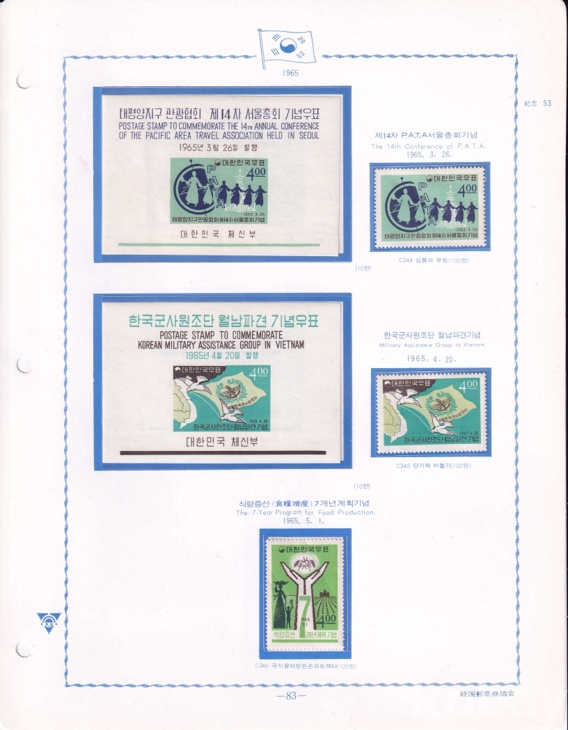 - 한국우표앨범 모음展 - 1965년 태평양지구 관광협회 제14장 서울총회 기념 우표 포함 5종