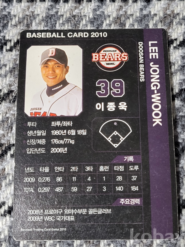 KBO가 공식카드를 발매하지 않던 2010년 해적판으로 발행되었던 희귀 프로야구 트레이딩카드 입니다.