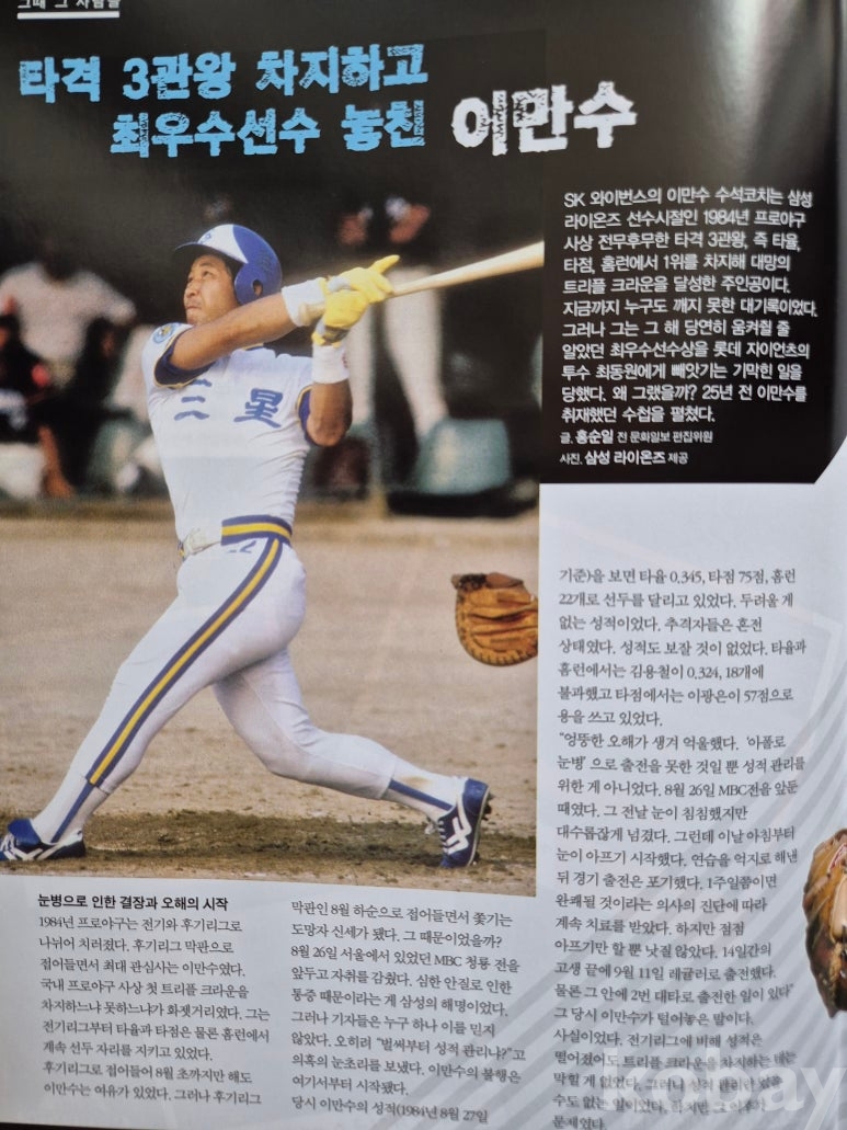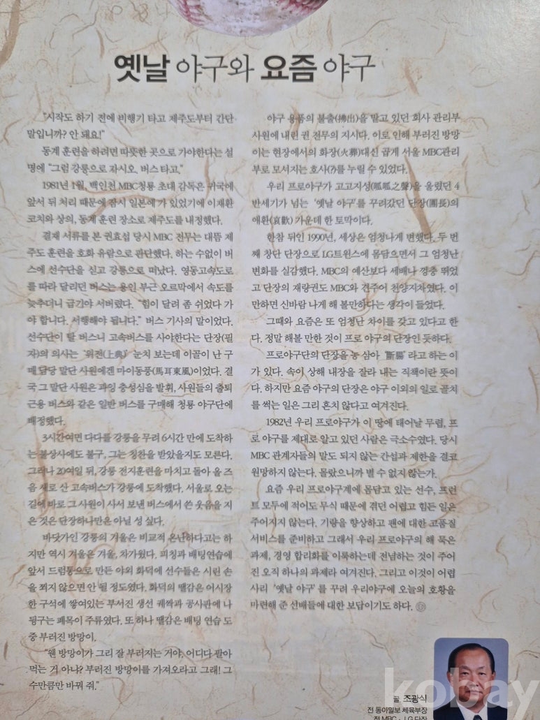 설명 : 이 책은 한국야구위원회에서 직접 발행한 한국프로야구 선수 및 관련 자료로 만든 월간 야구 잡지입니다.