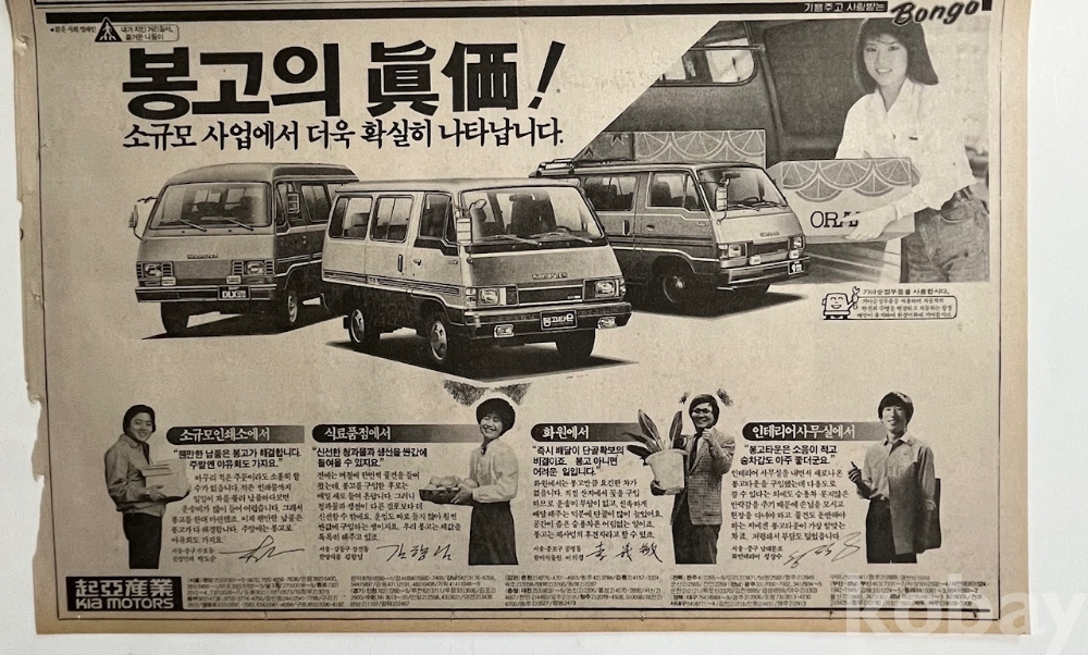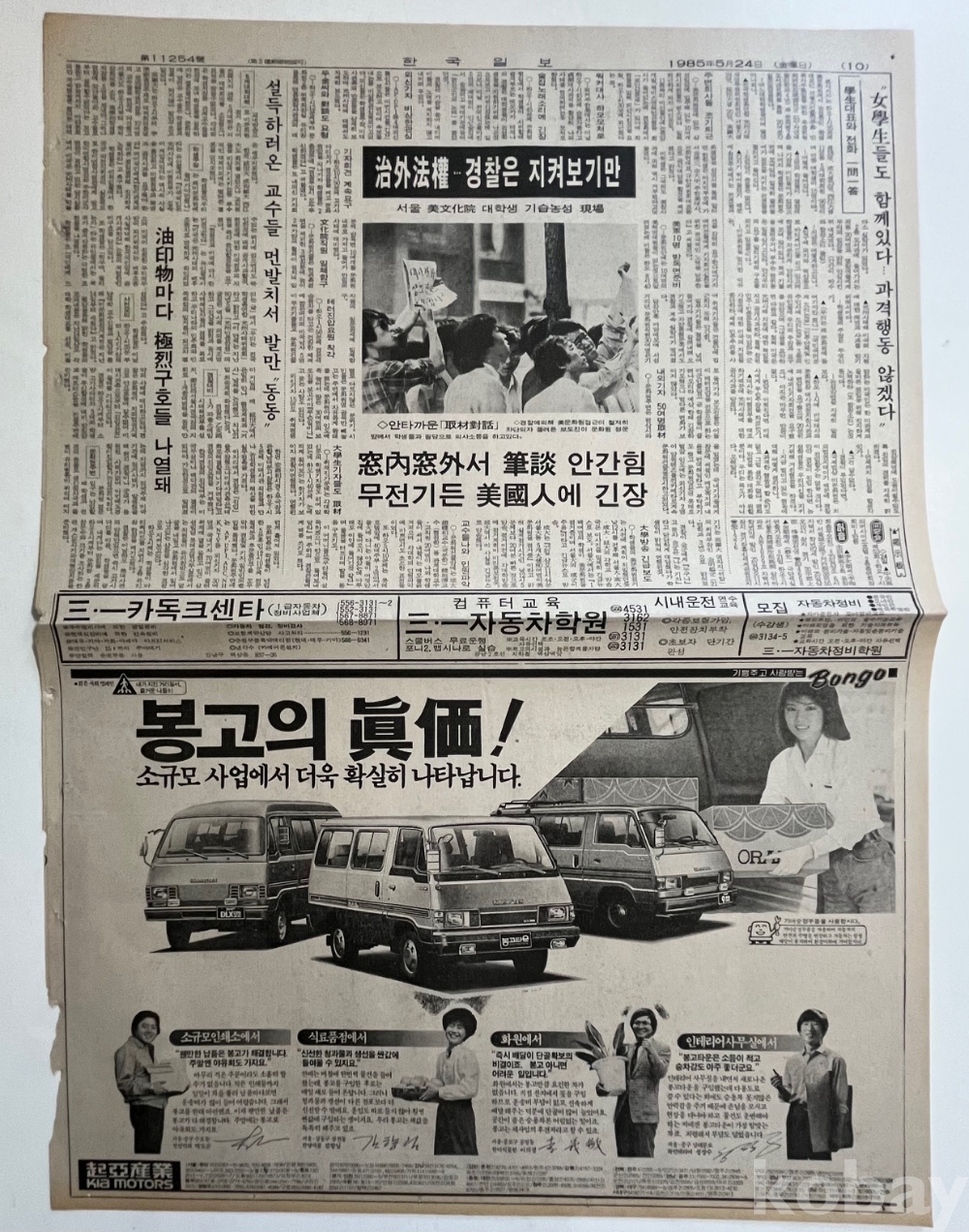 기아산업 봉고 광고가 실린 1985년 한국일보 낱장입니다.