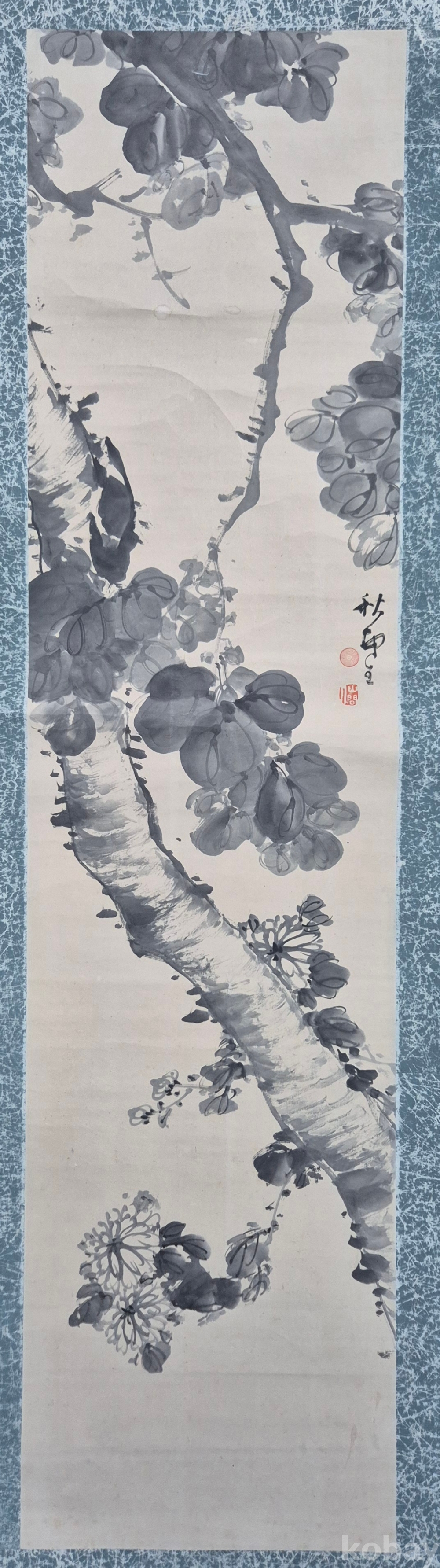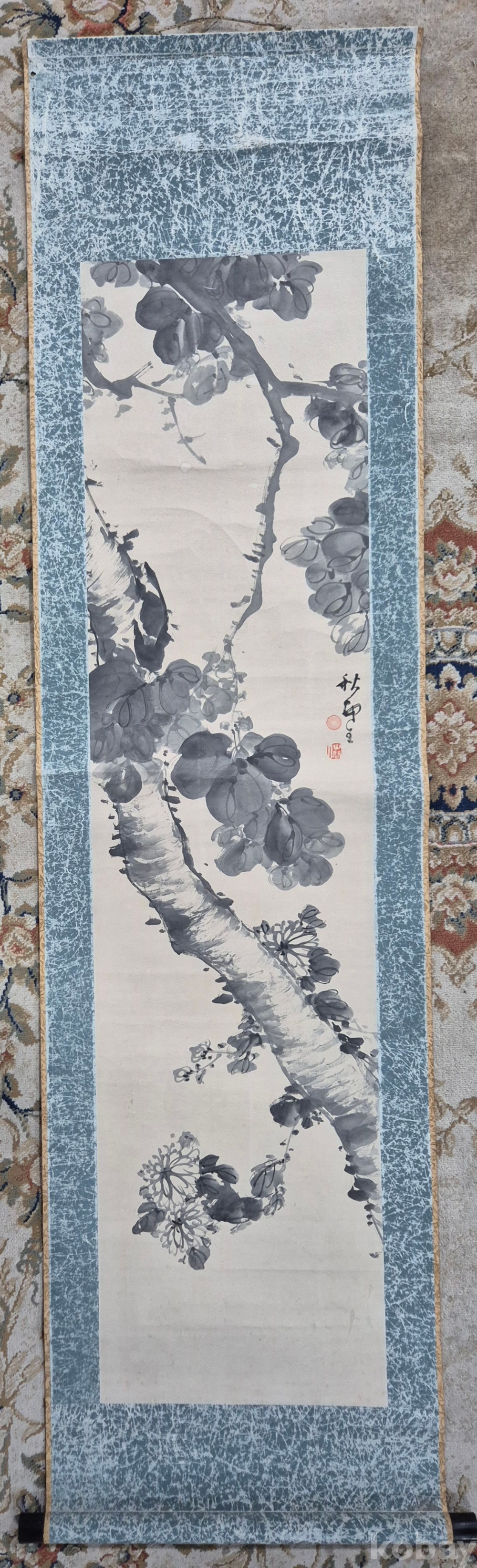 좋은집에서 나온 오래된 작품의 격이 아주 높은 대가 작품 추정되는 묵화 족자'이오니 작품 이미지상