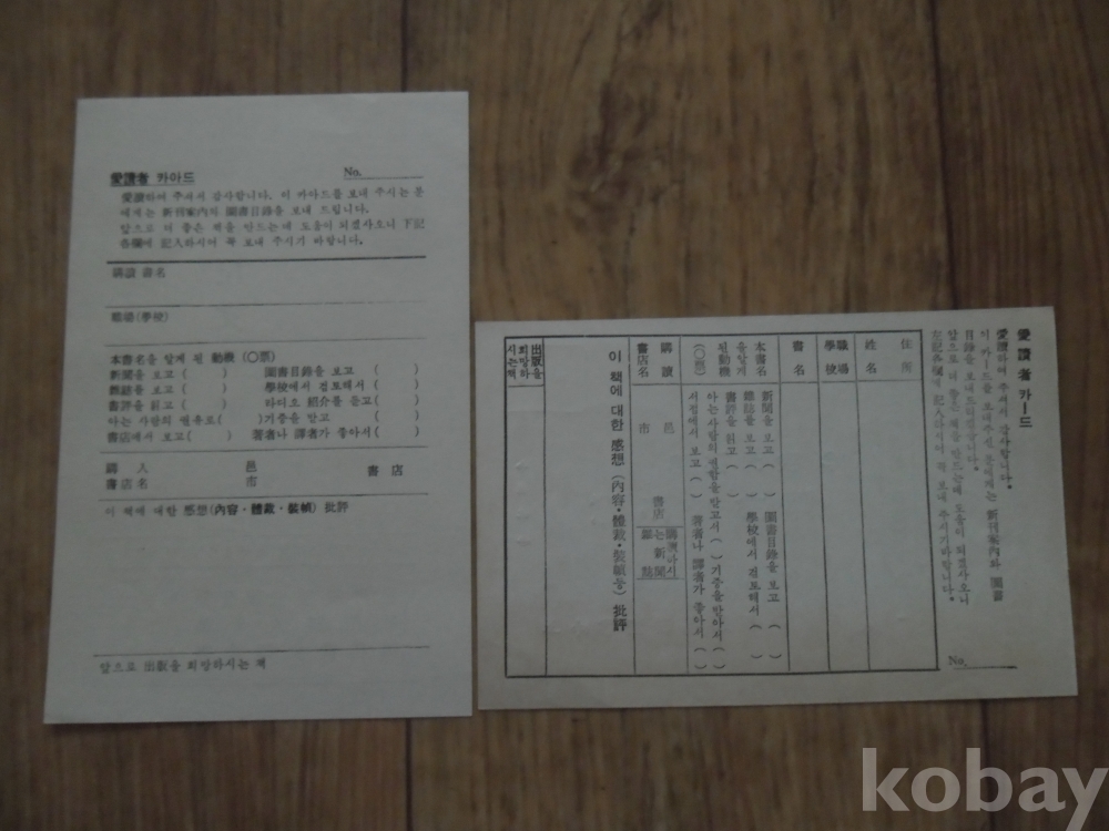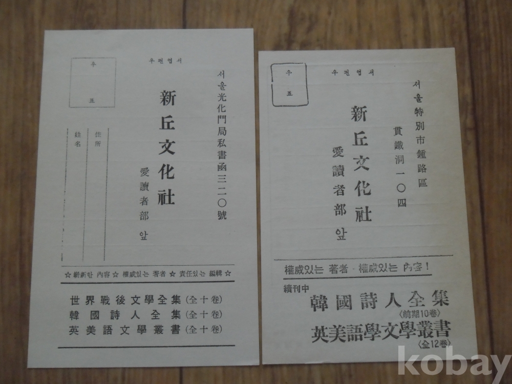 1960년대 신구문화사 애독자 통신엽서 2종