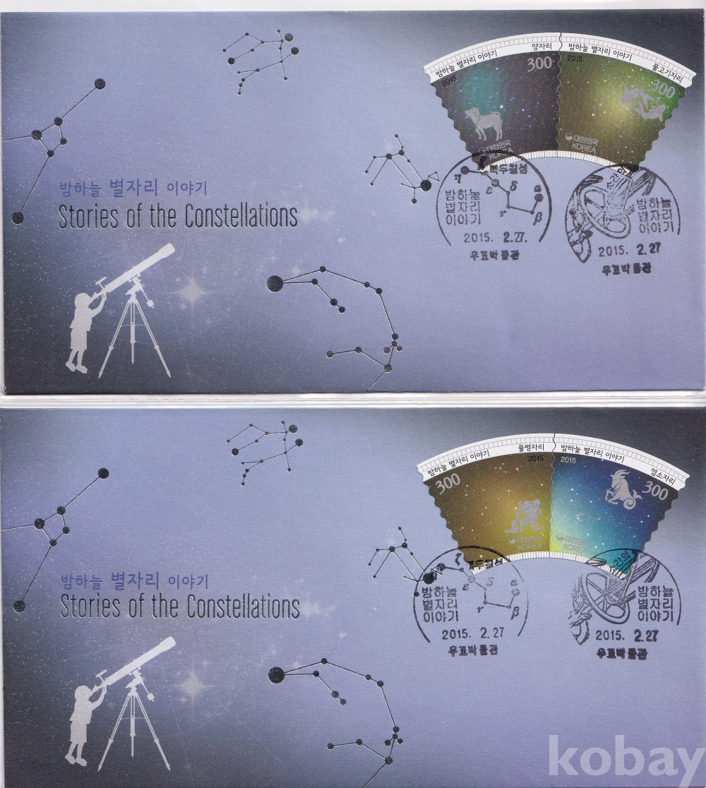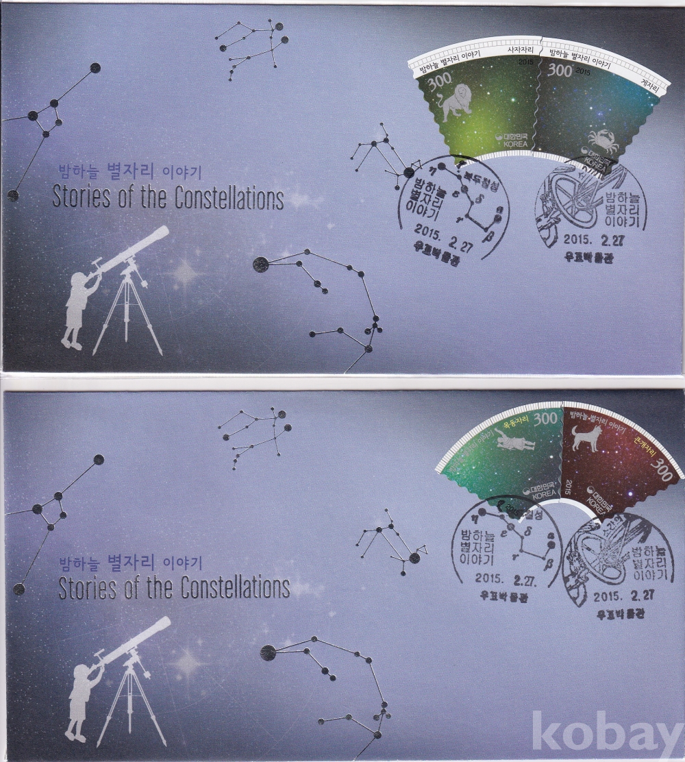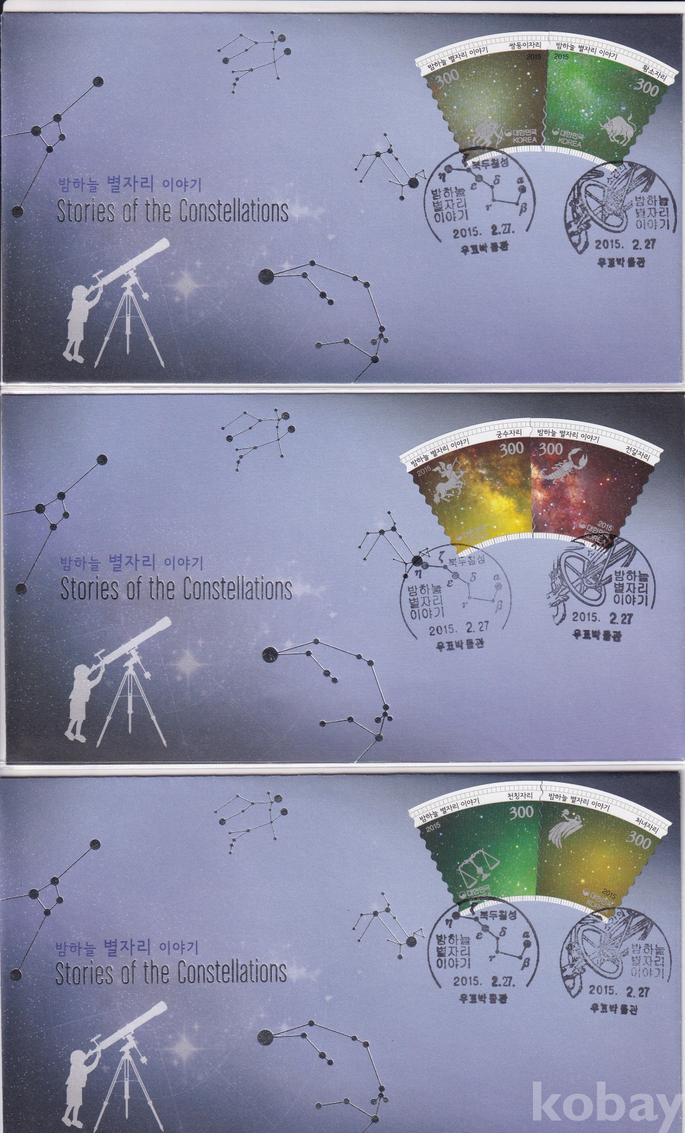 2015년 발행 밤하늘 별자리 이야기 박초 세트 입니다.