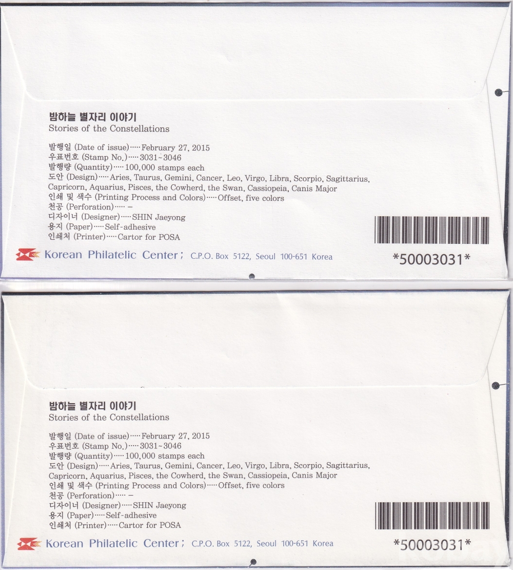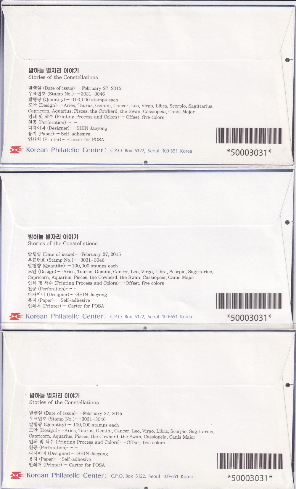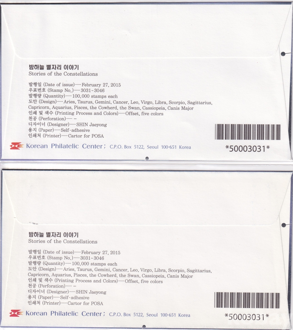 2015년 발행 밤하늘 별자리 이야기 박초 세트 입니다.