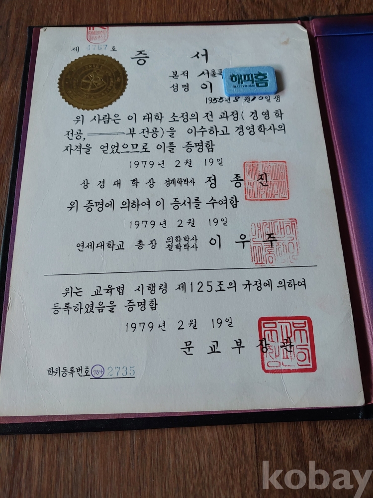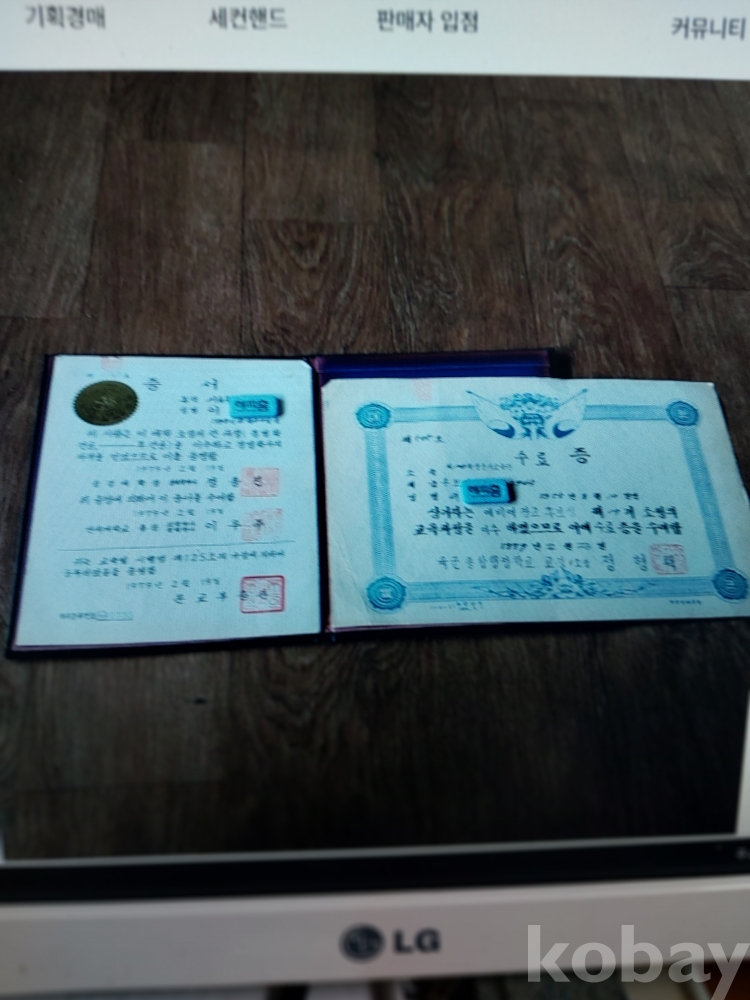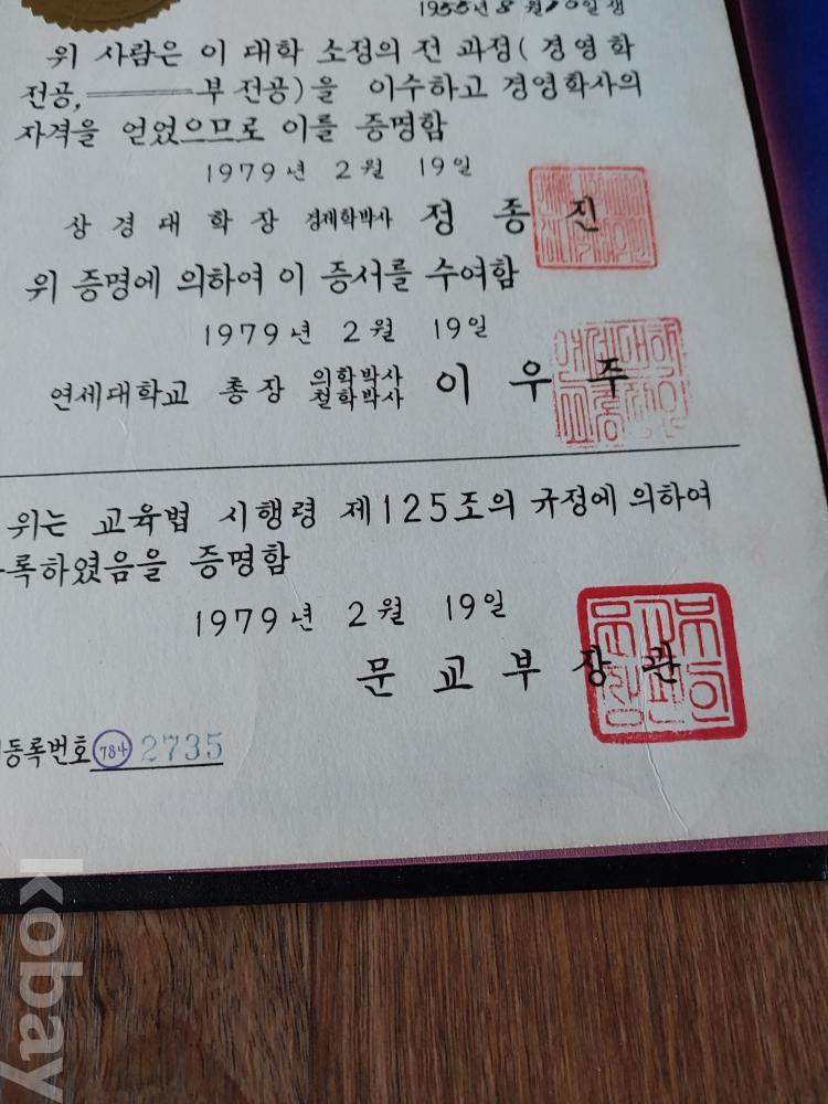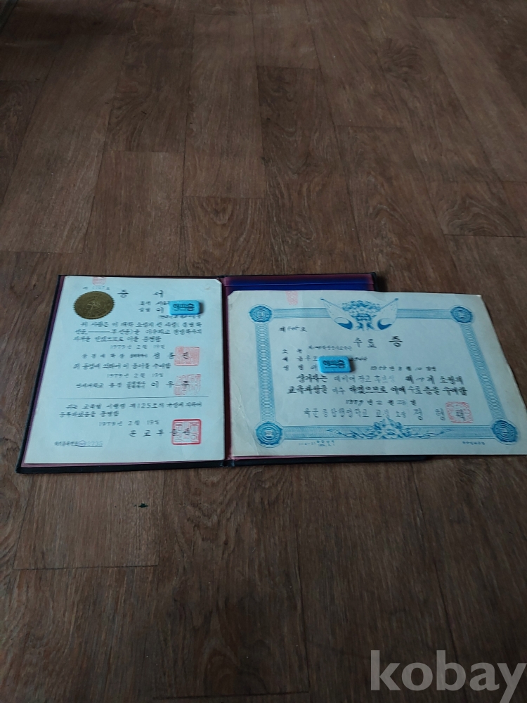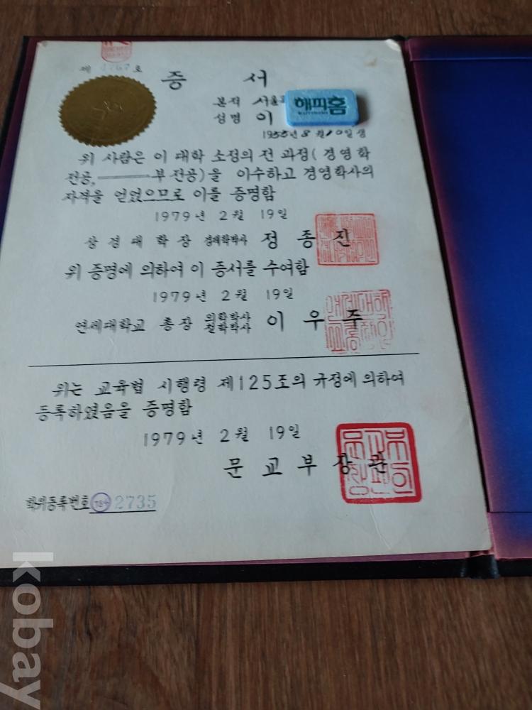 1970년대 연세대학교 학위증서와 학생 군사 교육 수료증입니다.