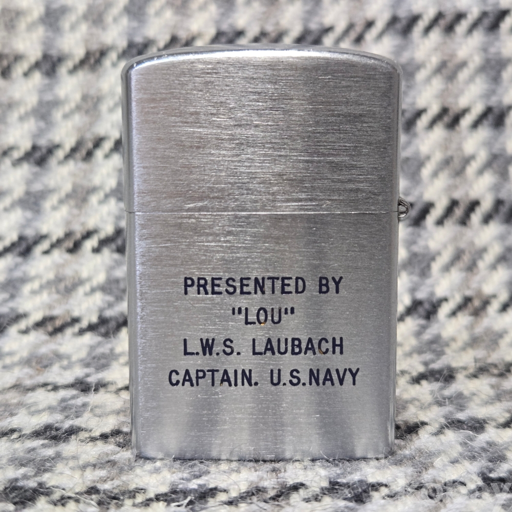 뒷면엔 함장 L.W.S. 라우바흐(L.W.S. Laubach)가 "LOU라이터입서명이 각인되었습니다.