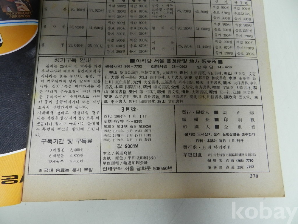 국내 최고의 대중 잡지 였던 아리랑 입니다 시대를 대변하는 잡지라 추억전시에 활용하면 좋다고 합니다 상태 최고 입니다 이미지 참고 바랍니다