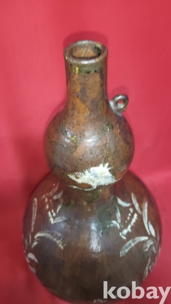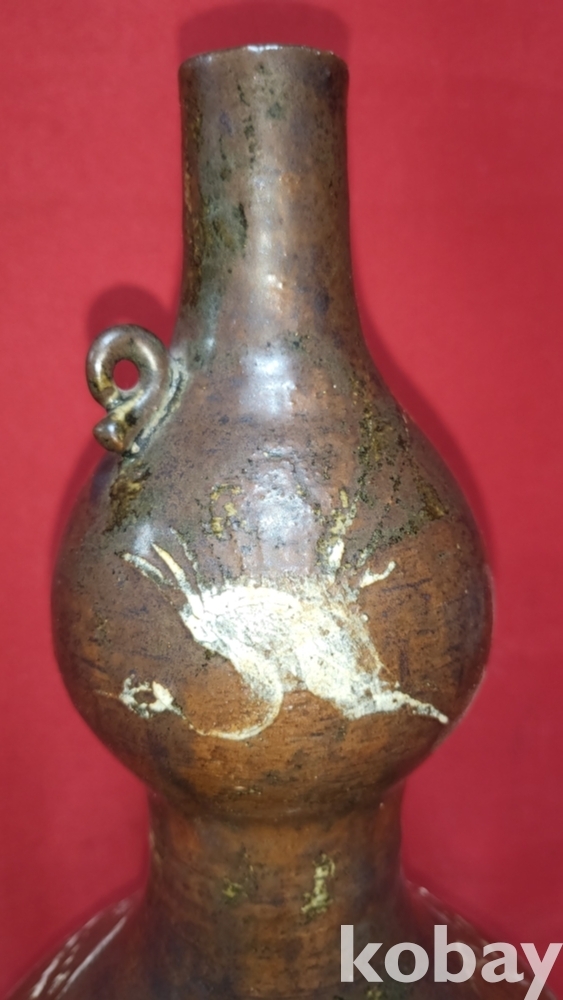 고려시대 황청자 백상감 꽃과 학(花鶴)문양 호리형병입니다,