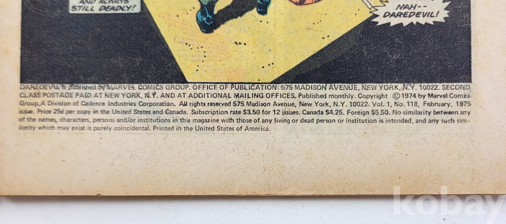 물 품 명 | DAREDEVIL / Vol.1 #118 Feb. 1975 / MARVEL COMICS GROUP / 미국 |