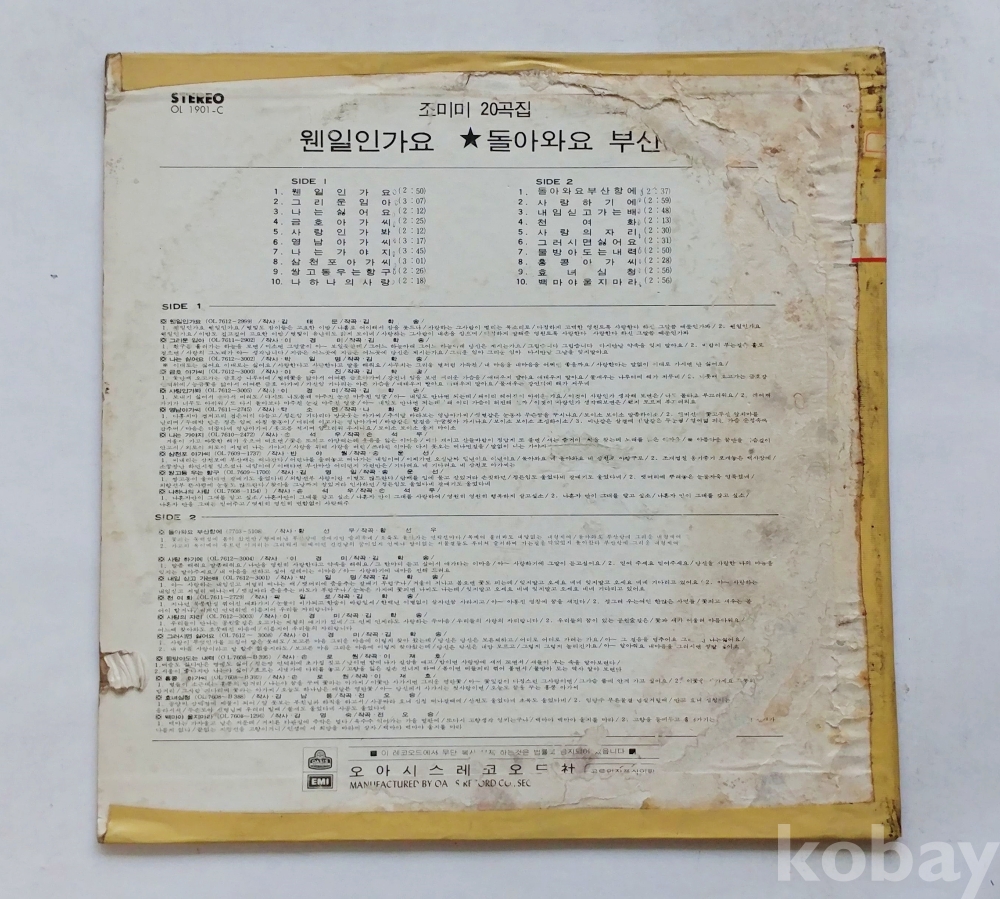 EX : 약간의 마모, 모서리 찢김 존재 음반상태