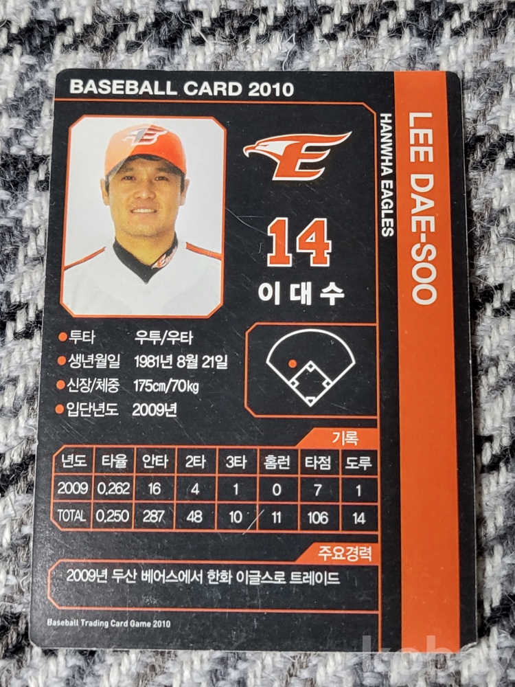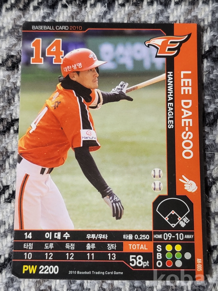 KBO가 공식카드를 발매하지 않던 2010년 해적판으로 발행되었던 희귀 프로야구 트레이딩카드 입니다.