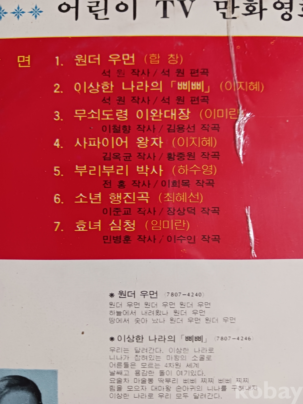 음반 미개봉 미사용이나 아주 오래되어 앞표지 상단 가운데 약간 비닐 갈라진 자국 뒷표지 왼쪽 상단 포장 비닐 약간 찢어졌습니다
