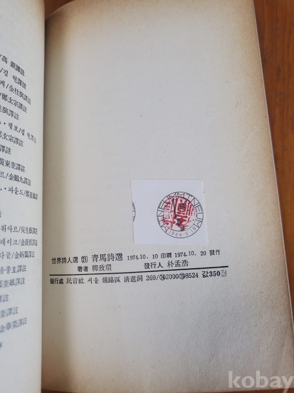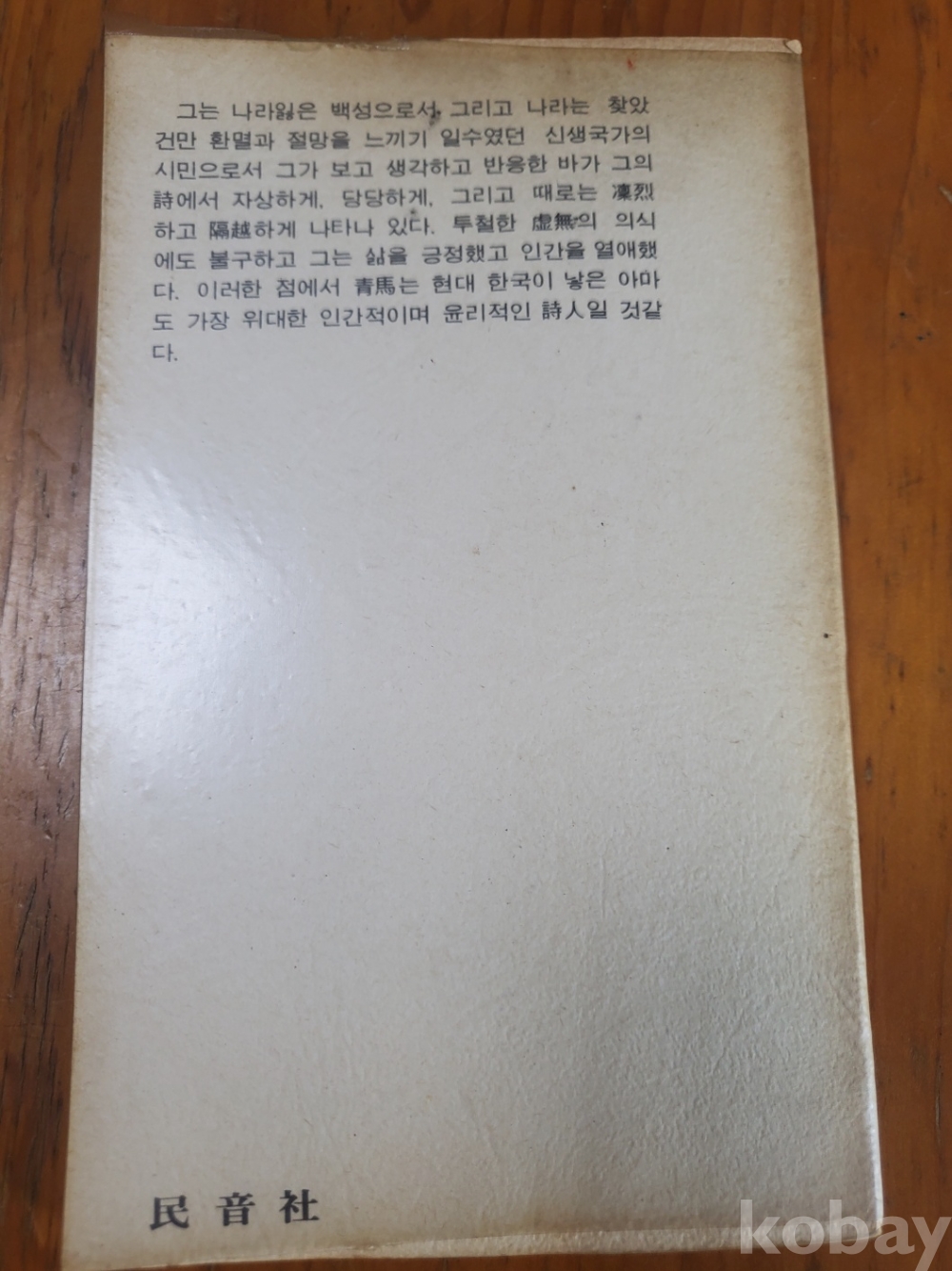 1. 청마시선, 유치환, 민음사, 1974년, 126쪽, 상태 상, 사진 참조