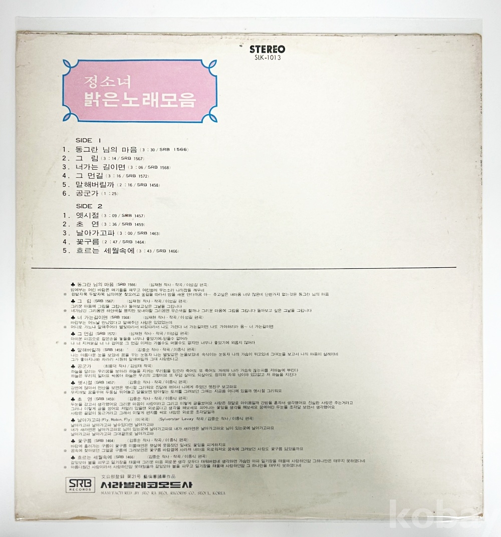 상품 설명 | Side A 1. 동그란 님의 마음 2. 그림 3. 너가는 길이면 4. 그 먼길 5. 말해버릴까 6. 공군가 Side B 1. 옛시절 2. 초연 3. 날아가고파 4. 꽃구름 5. 흐르는 세월속에 | ||