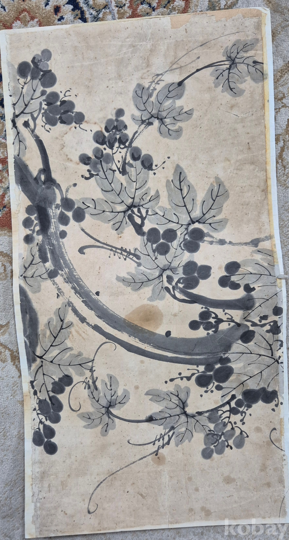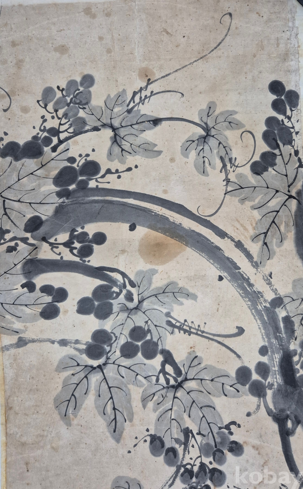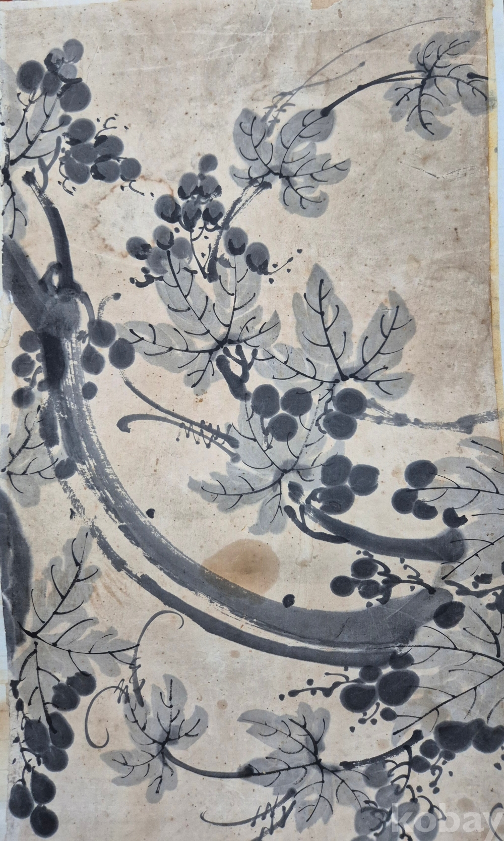 원래 10폭 병풍 작품 연결 포도 작품이나 오래되어 서너점 훼손되고 남은 작품이라 하셨으며