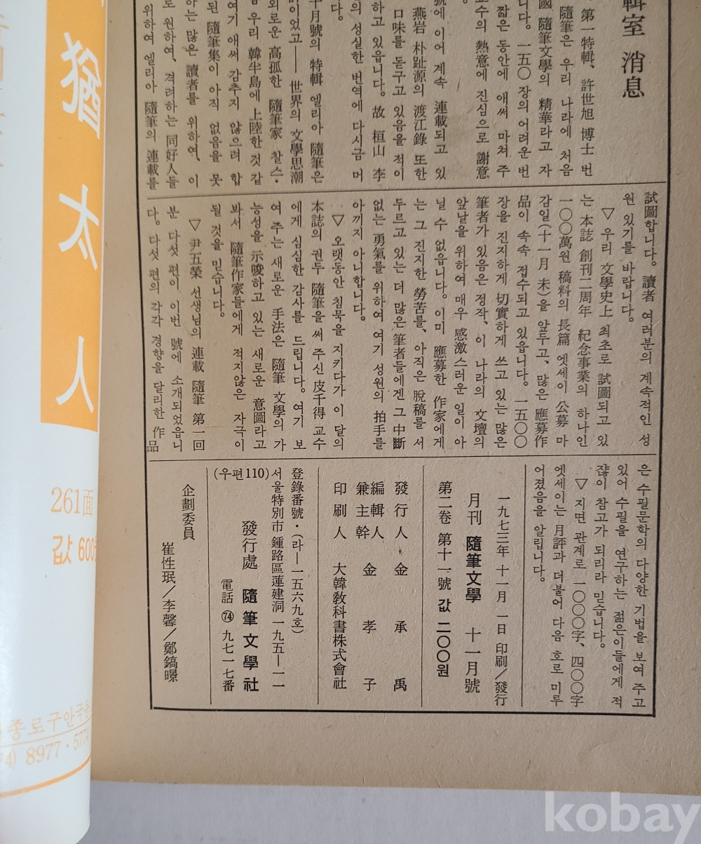 피천득 수필 <인연> 첫 발표 월간 수필문학