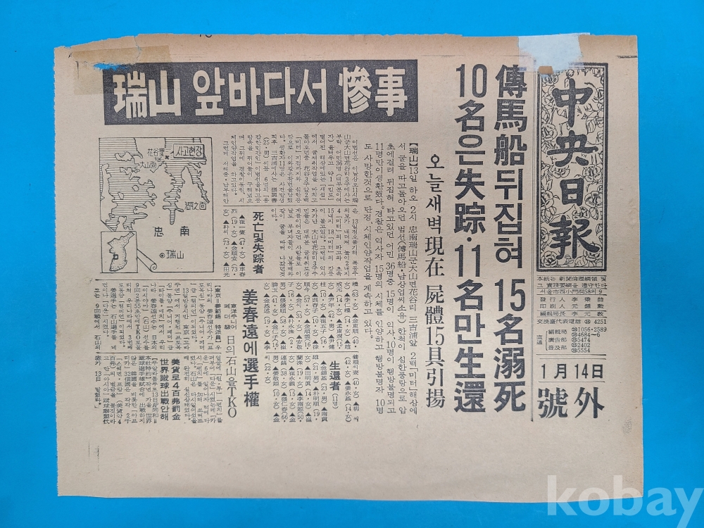 **** 1966년 1월 14일자 중앙일보 호외/서산 앞바다서 참사 등/2군데 정도 보수하였음
