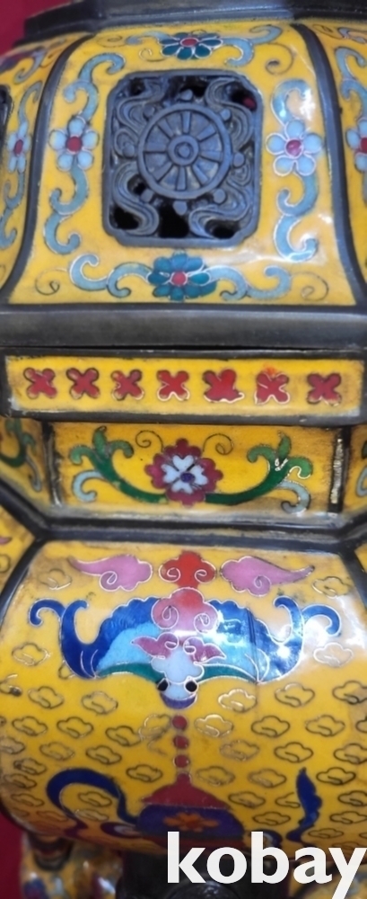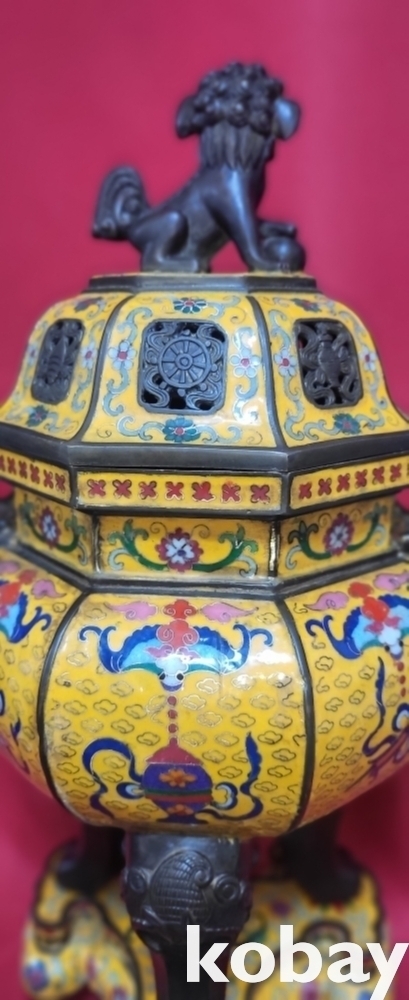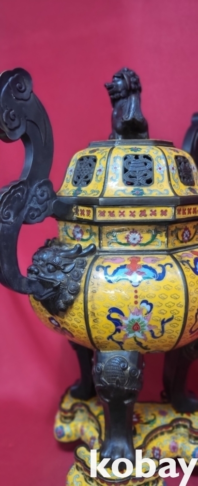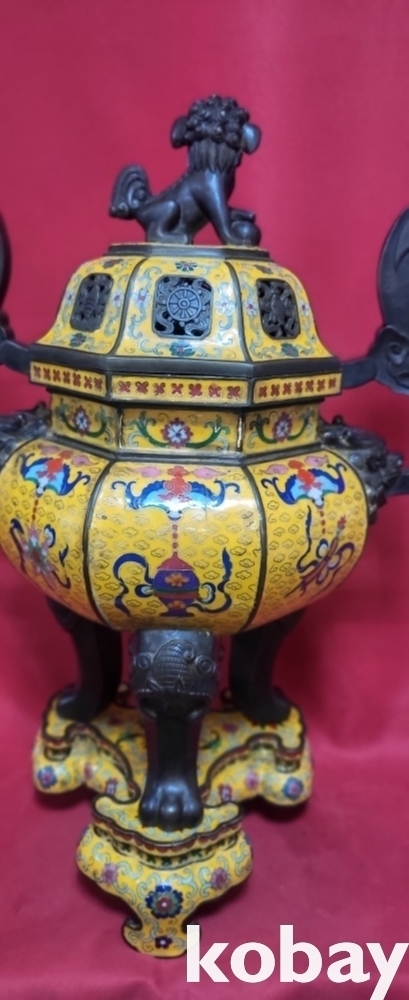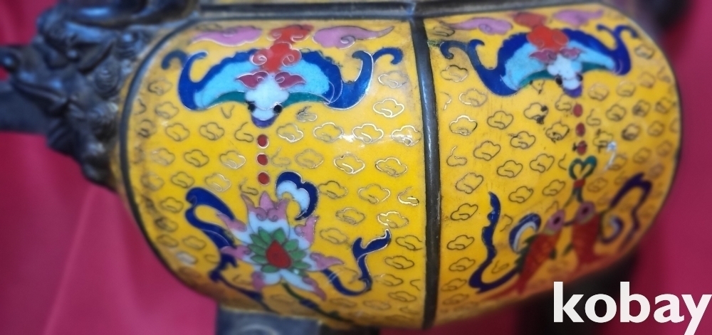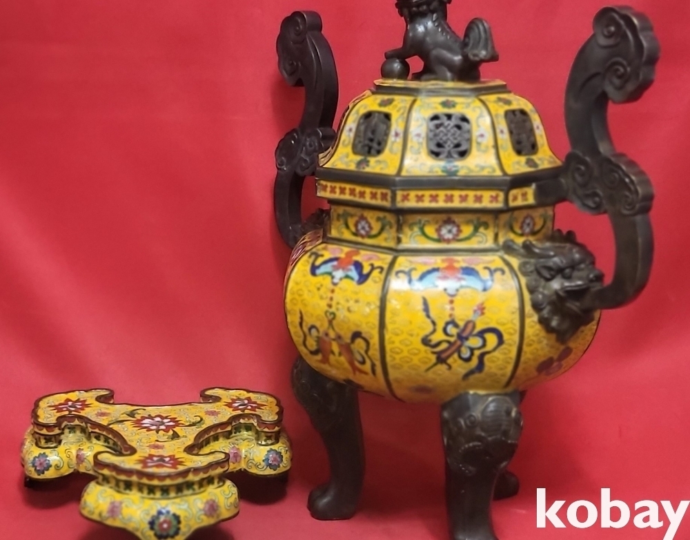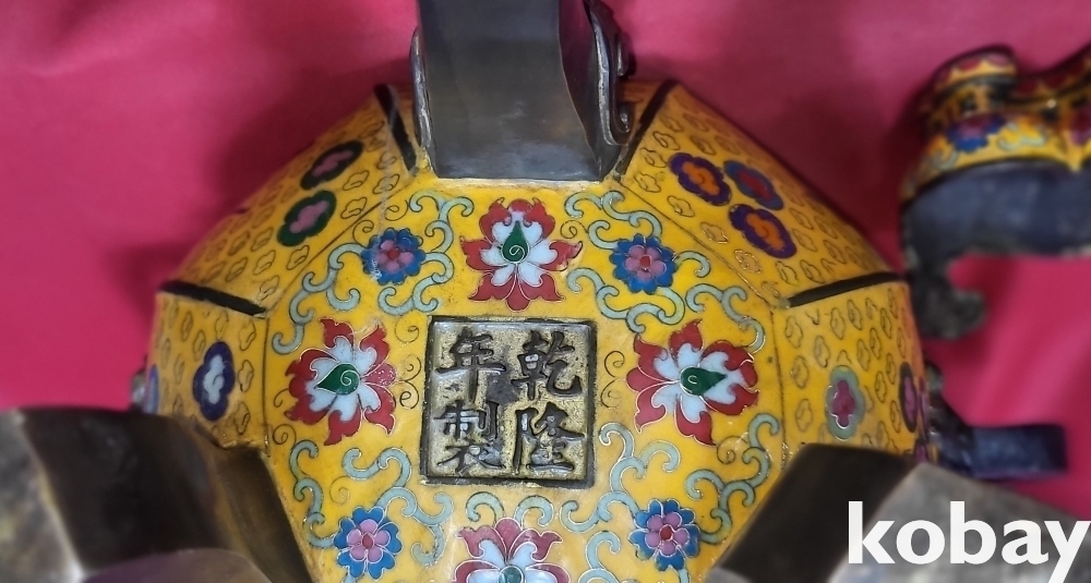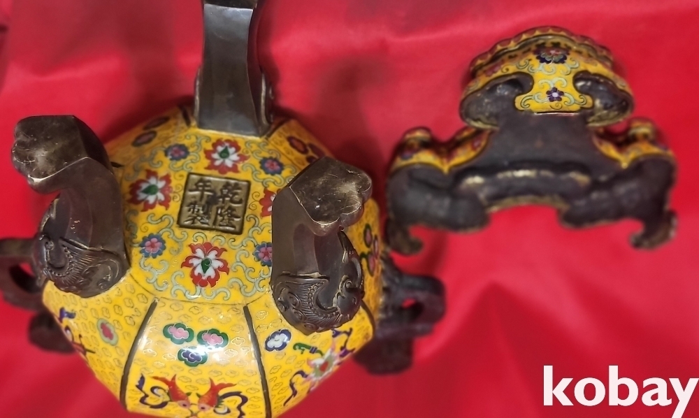 건륭연제( 乾隆年製) 관지 동태 범랑(칠보) 금채 박쥐 물고기 문양 큰 3단 분리 향로입니다,