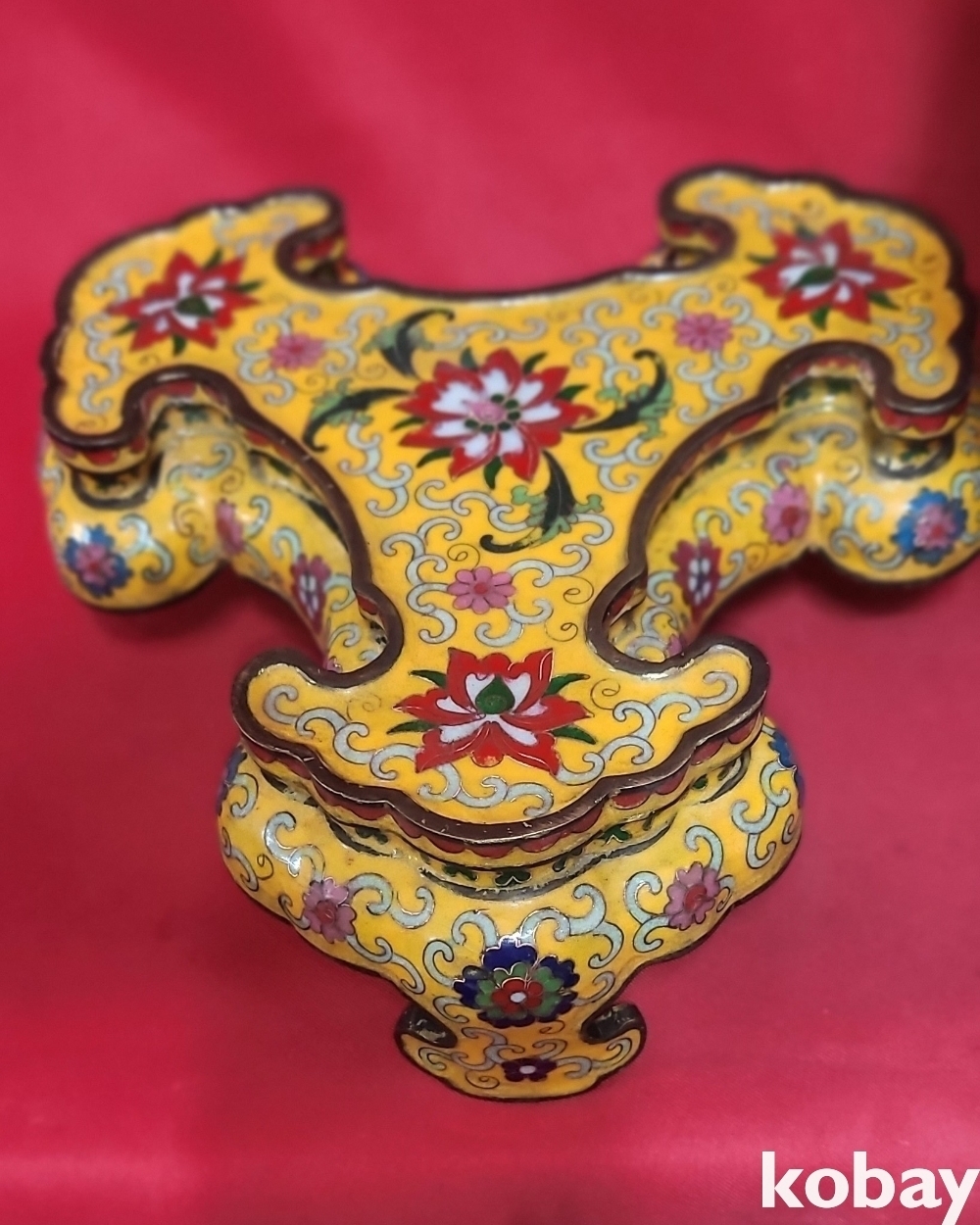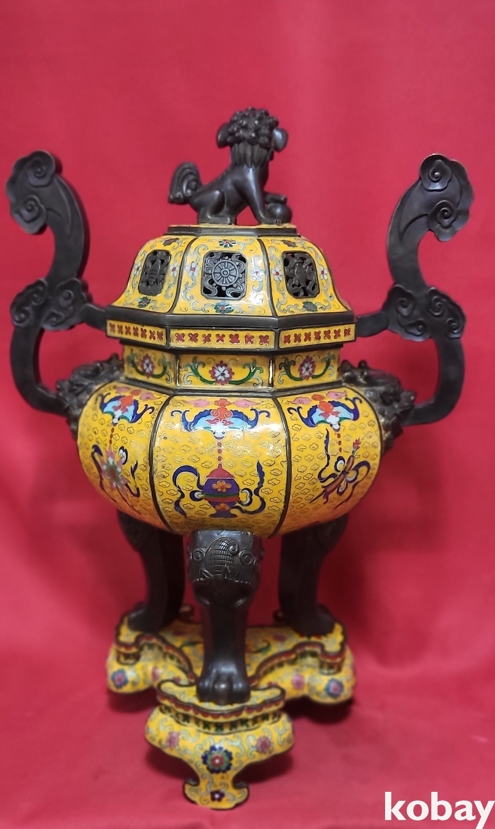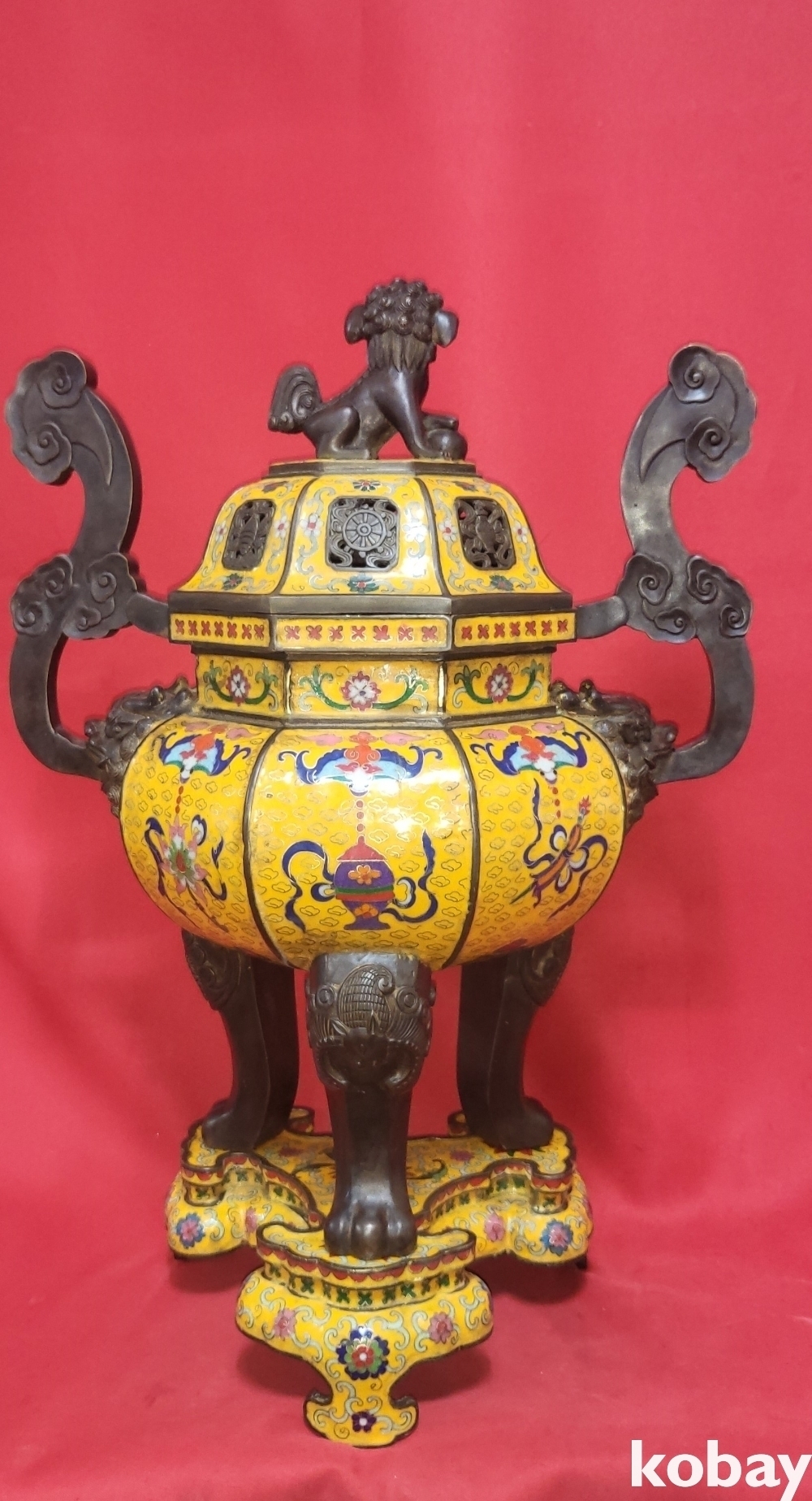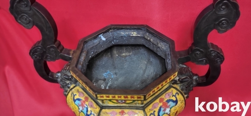 건륭연제( 乾隆年製) 관지 동태 범랑(칠보) 금채 박쥐 물고기 문양 큰 3단 분리 향로입니다,