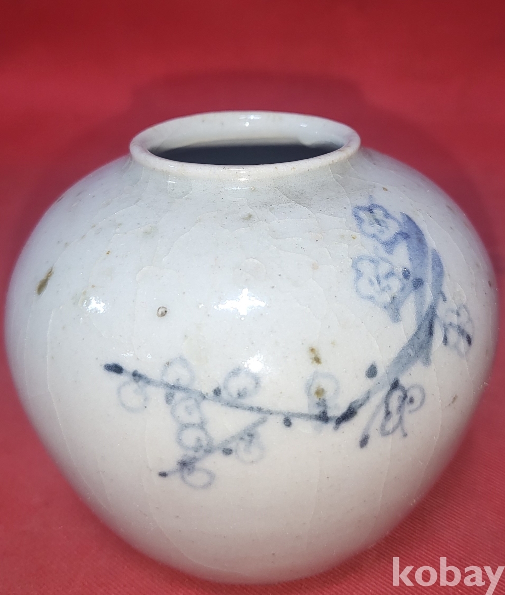 구한말 연대갖춘 청화백자 매화 문양 호입니다,