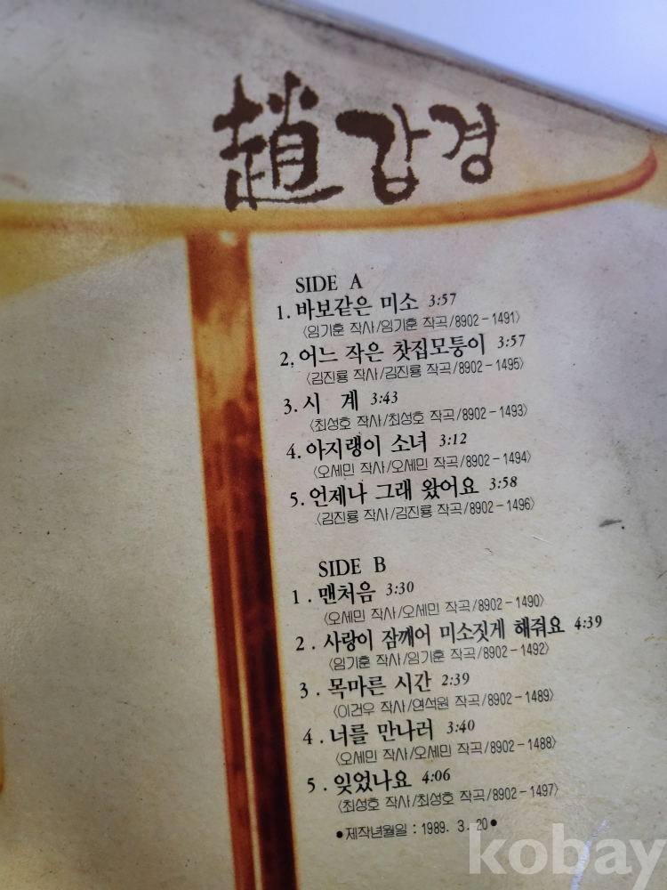 조갑경1989년3윌 킹레코드사에서제작한LP음반입니다