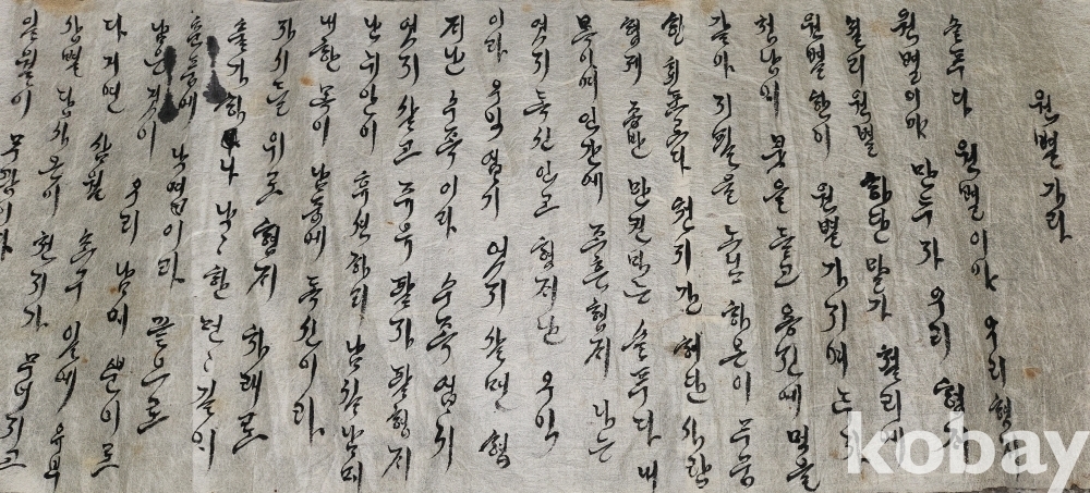 "원별가라" 국문으로 완성된 특대형급 한지 바닥입니다,