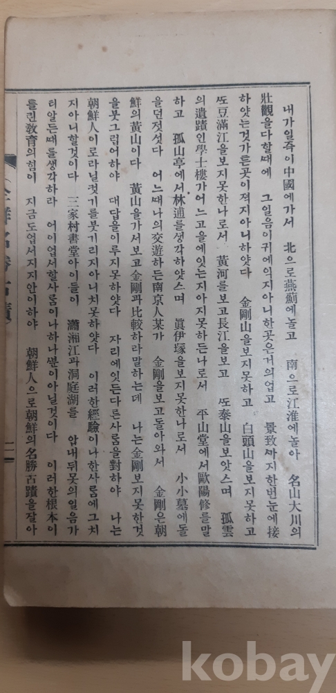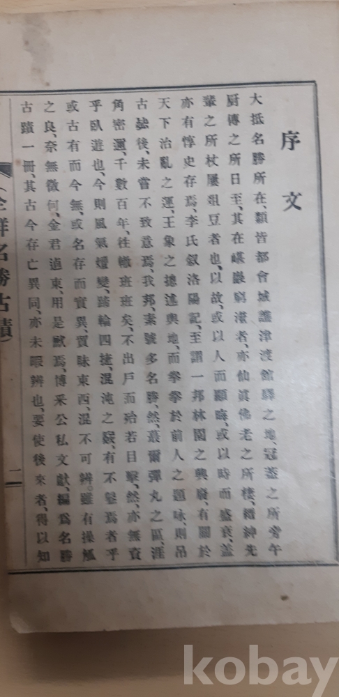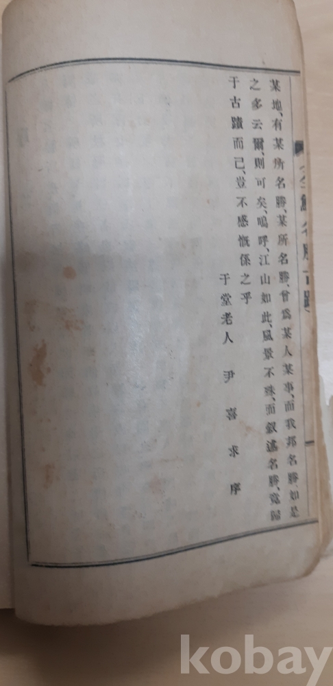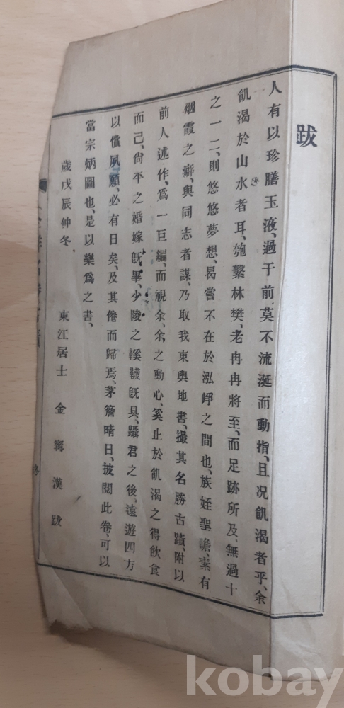 1929년 윤희구 편저 <조선명승고적>입니다. 자서와 함께 벽초 홍명희의 글이 실려 있습니다. 표지와 판권이 낙장이어서 온전한 상태는 아니지만, 본문은 그대로 살아 있습니다. 속표지부터 앞부분 왼쪽은 사진에 보이는 바와 같이 좀이 슬어 있습니다. 신중하게 입찰하시기 바랍니다.