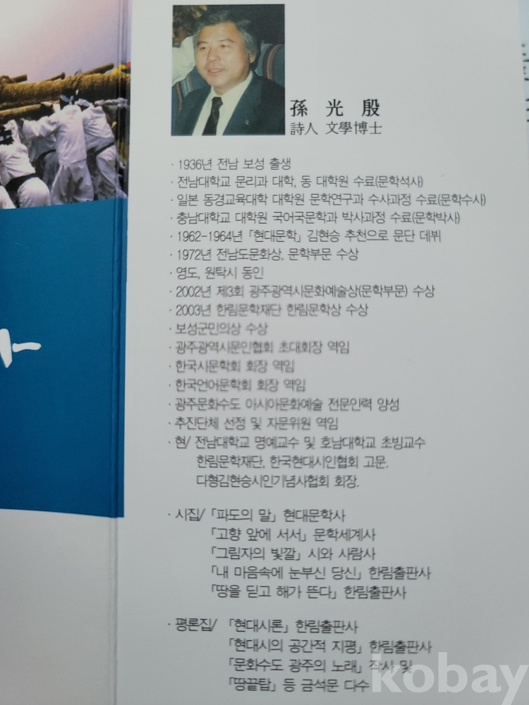 전남대학교 인문과학대학 국어국문학과 교수로 정년 퇴임한 시인•문학평론가(孫光殷).