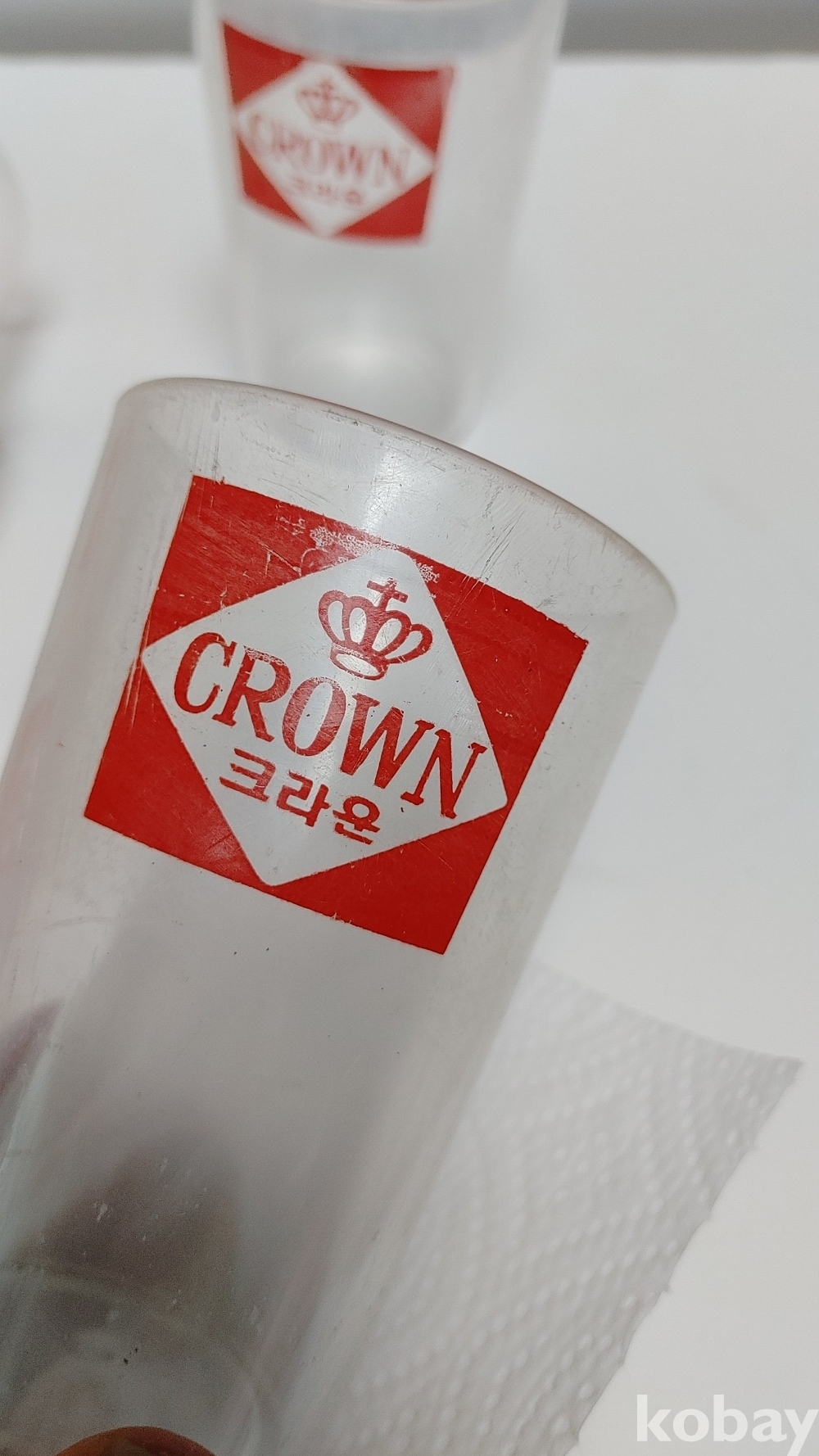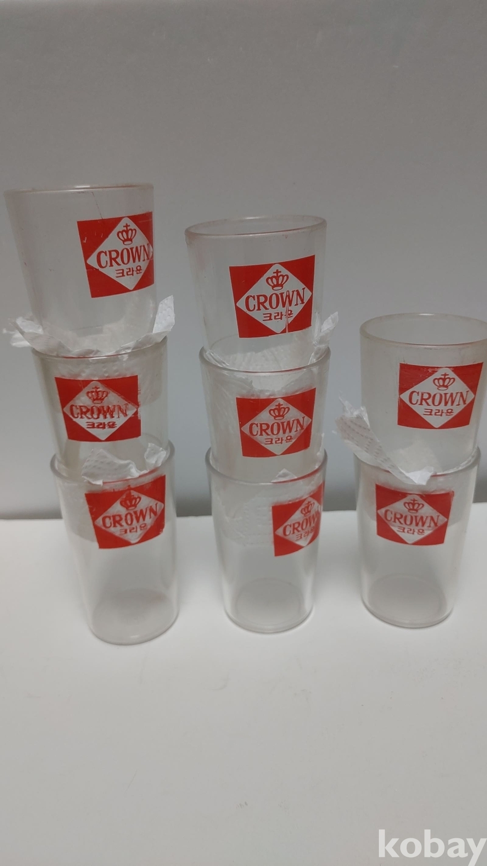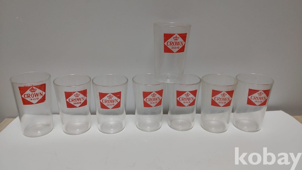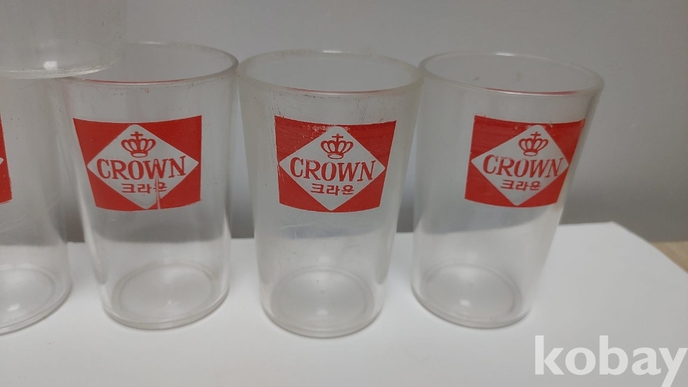 유리잔 전에 사용하던 오래된 플라스틱으로 만든 크라운 맥주잔 입니다(미사용8개)