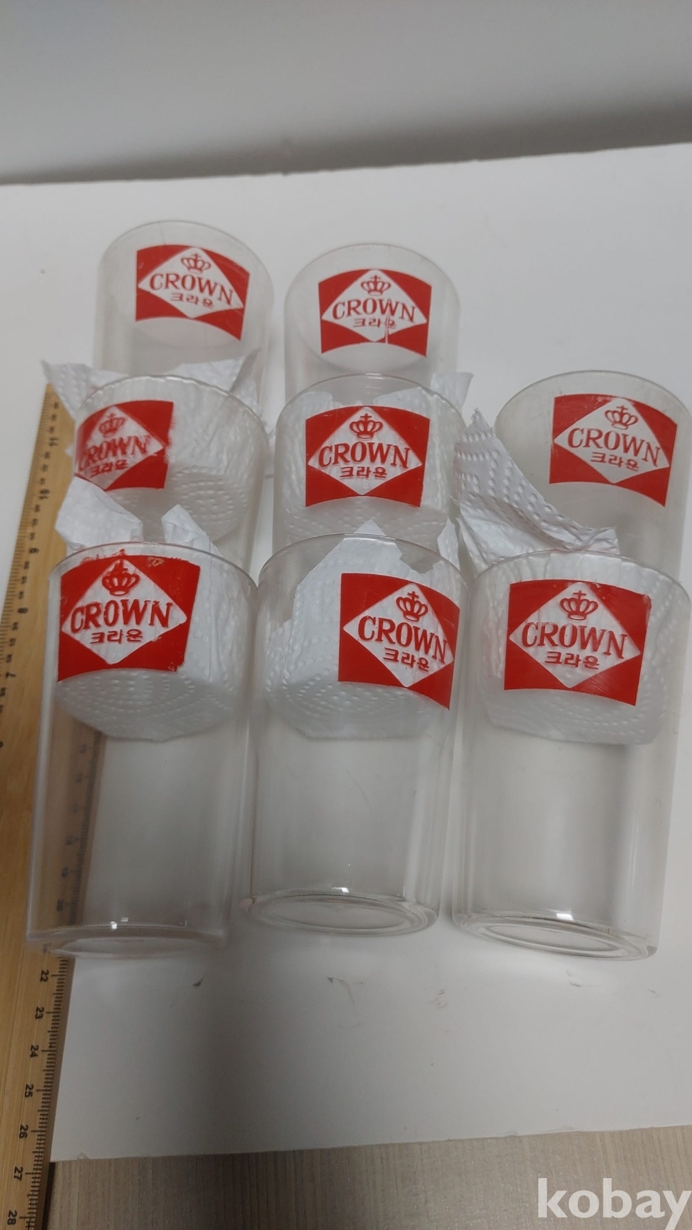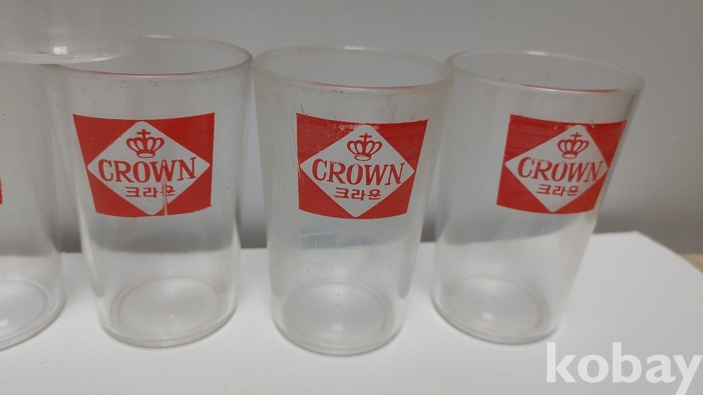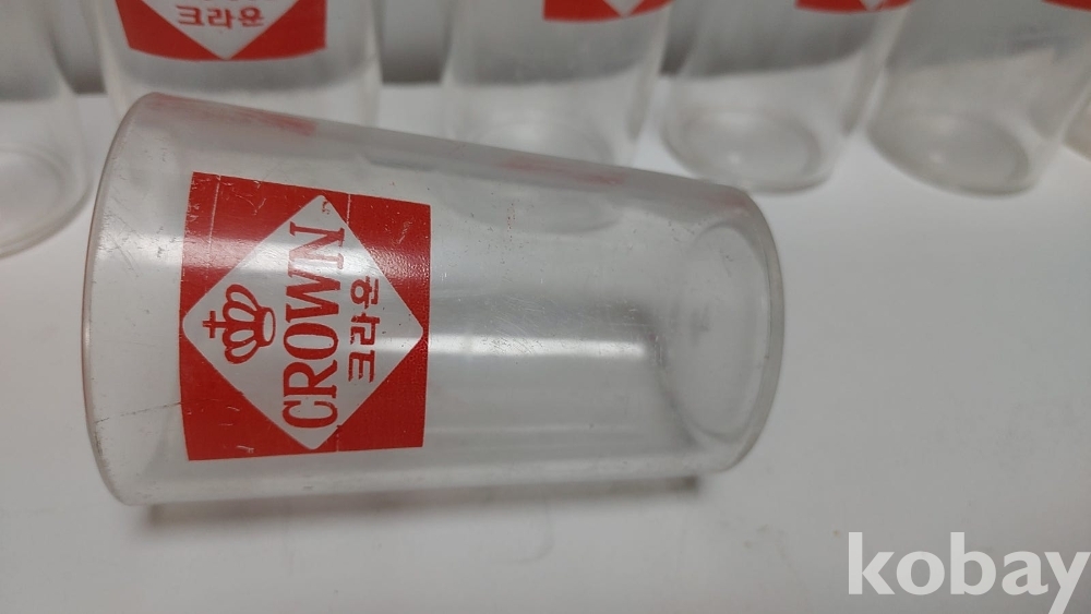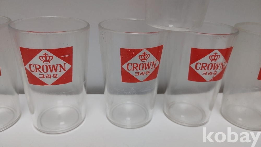 유리잔 전에 사용하던 오래된 플라스틱으로 만든 크라운 맥주잔 입니다(미사용8개)