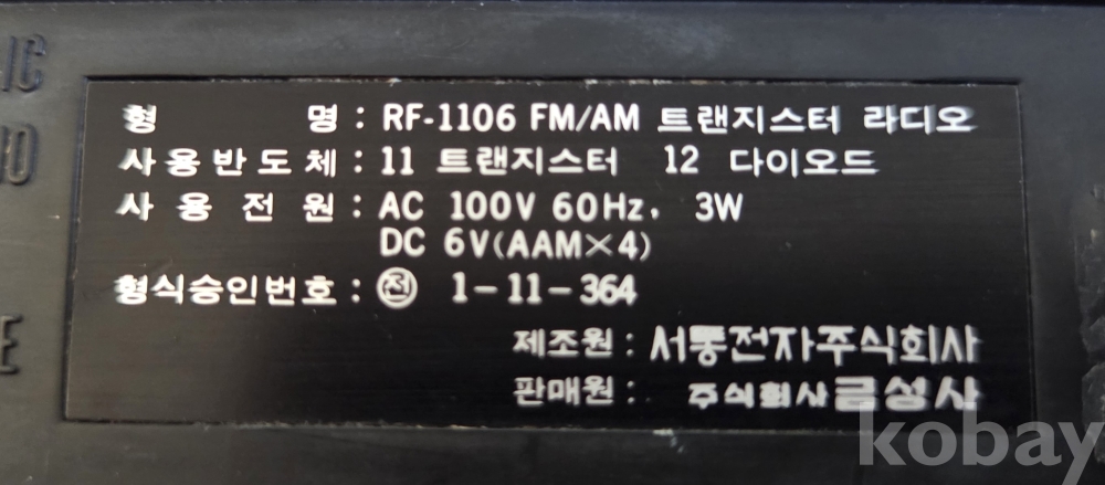 품 명 | 동작하는 금성 AM/FM 라디오 ***RF-1011*** |