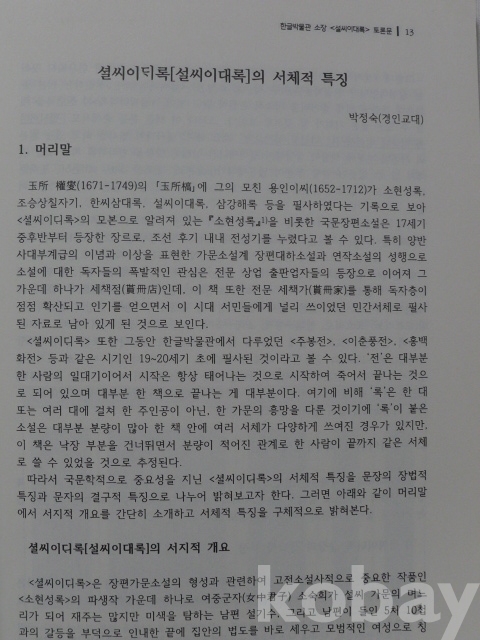 국립한글박물관 소장본의 영인본을 첨부하고, 이를 연구한 논문과 토론문.