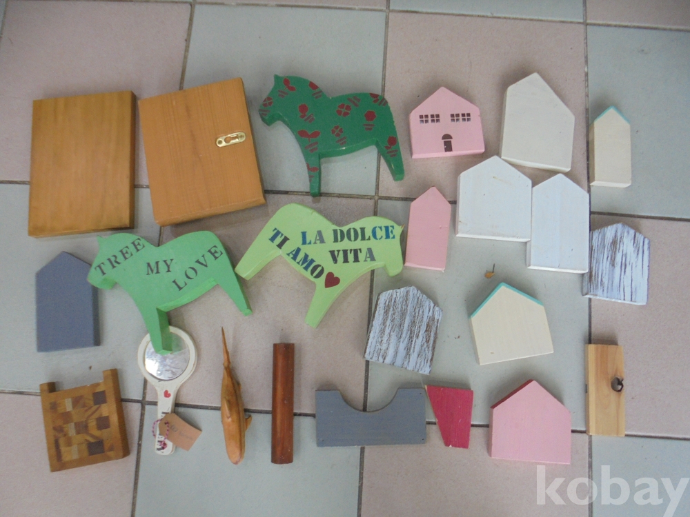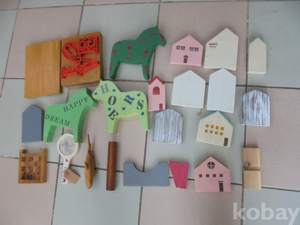 나무말 3점과 널판에 각종 의미깊은 그림과 글씨들어간 모형다양한 나무로 만든 예술 조각품 20여점