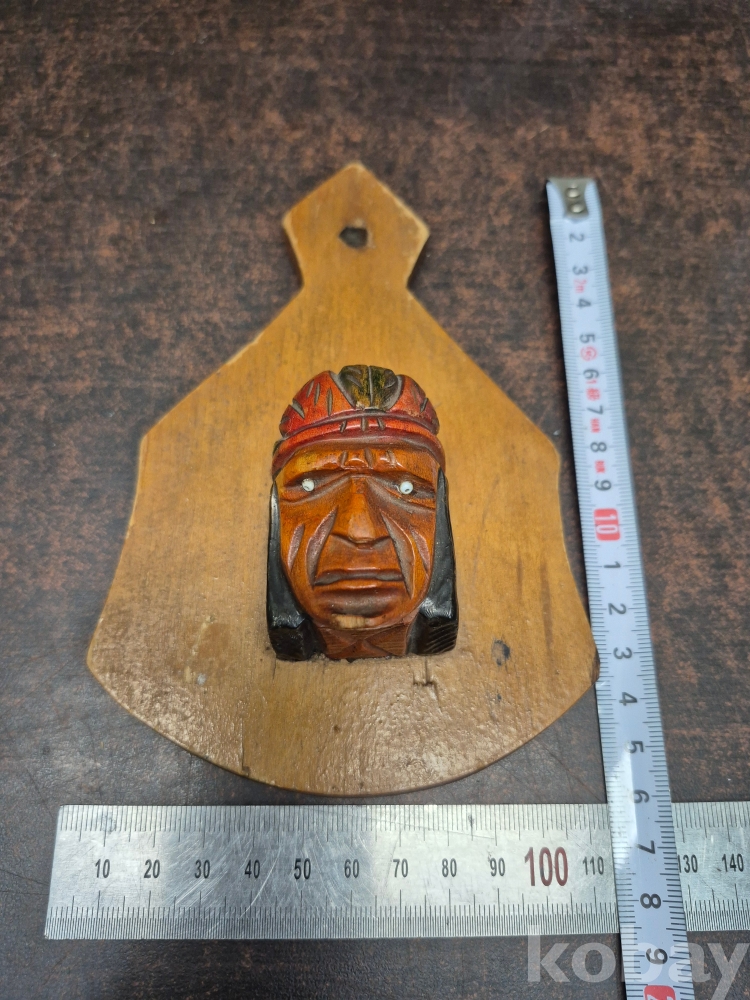 원목을 깍아 만든 벽걸이형 인디언 인형 소품 11*5*16