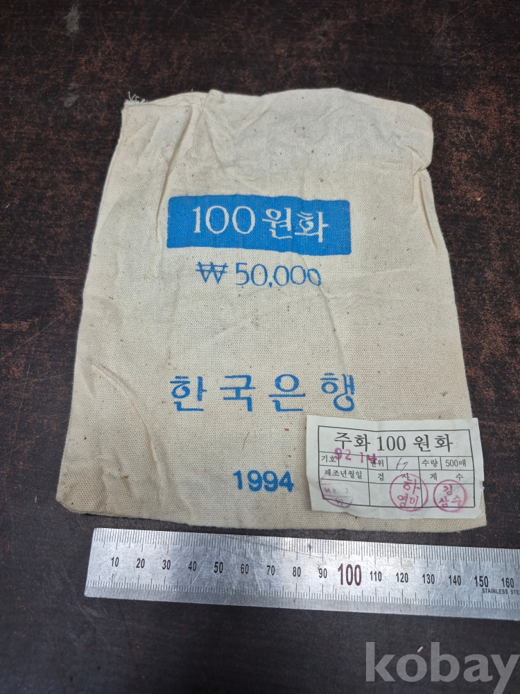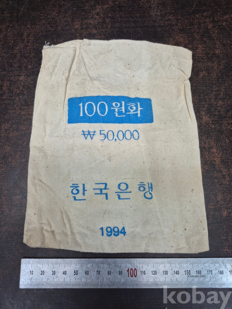 1994년 한국 조폐공가 제조 100원화 50000원 들이 천 동전자루 17*22*0.5