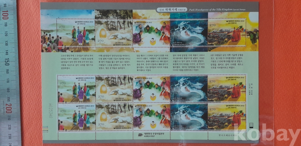 신라 박혁거세 특별 우표 15매 전지 입니다.