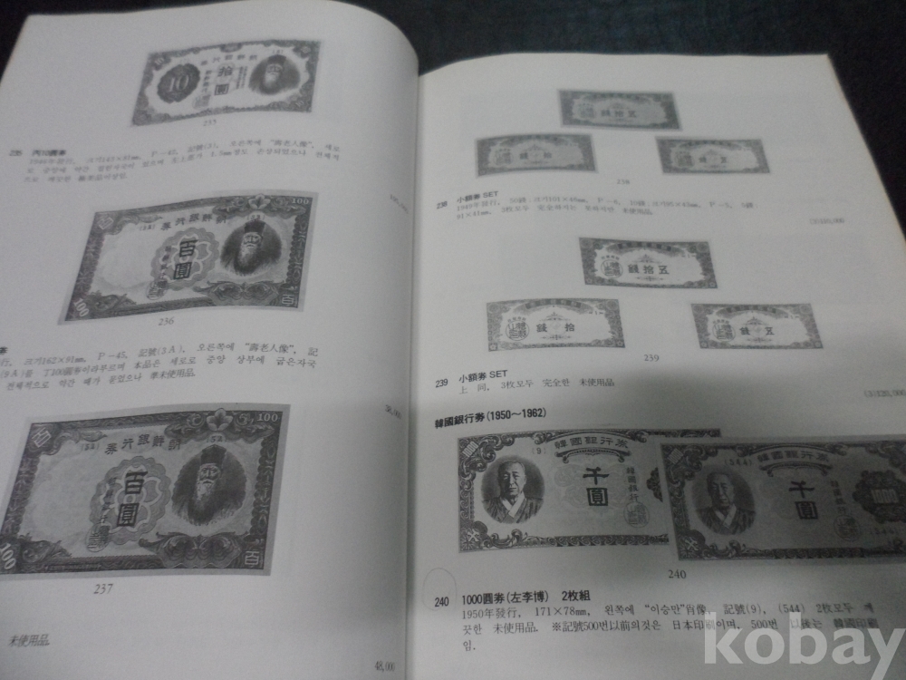 1. 한국화폐300선, 주최 주 화동양행, 1989년, 97쪽, 상태 상, 사진 참조