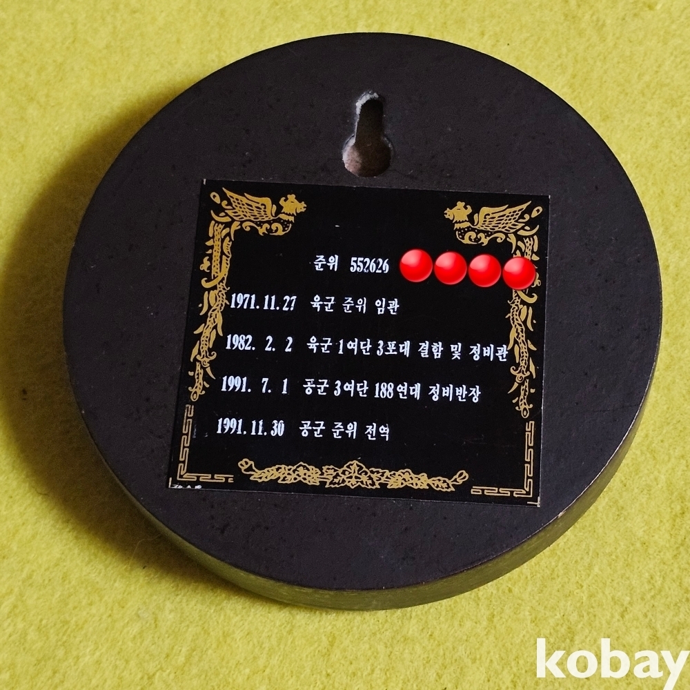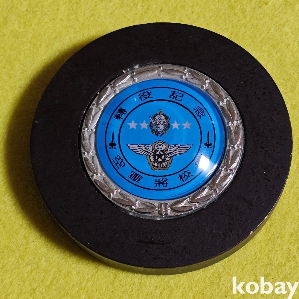 (((군자료))) 1991년 공군준위 전역기념 벽걸이 나무에 부착메달 (공군장교단)