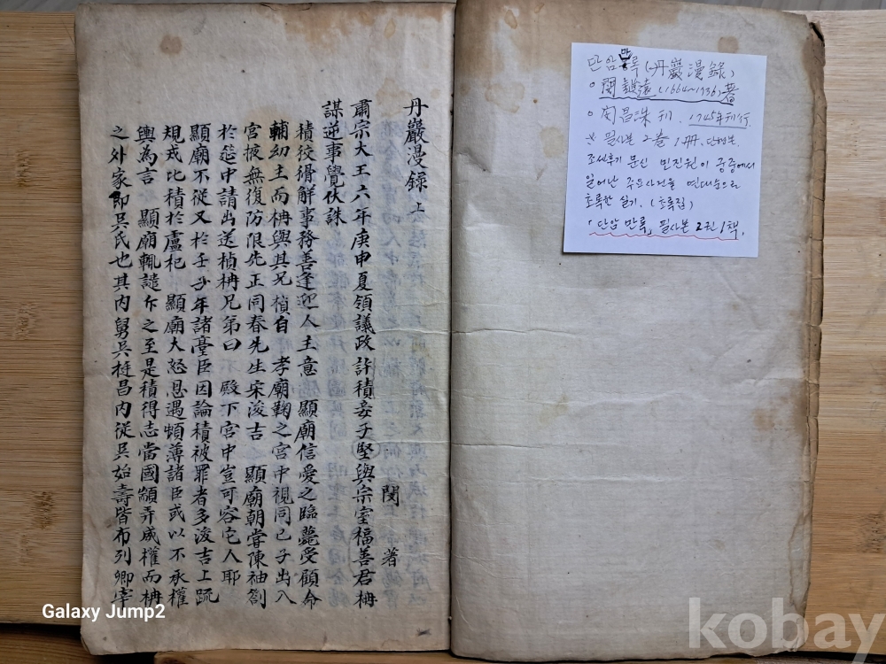| 조선후기 문신 민진원이 궁중에서 일어난 주유 사건을 연대순으로 초록한 실기. 초록집 |