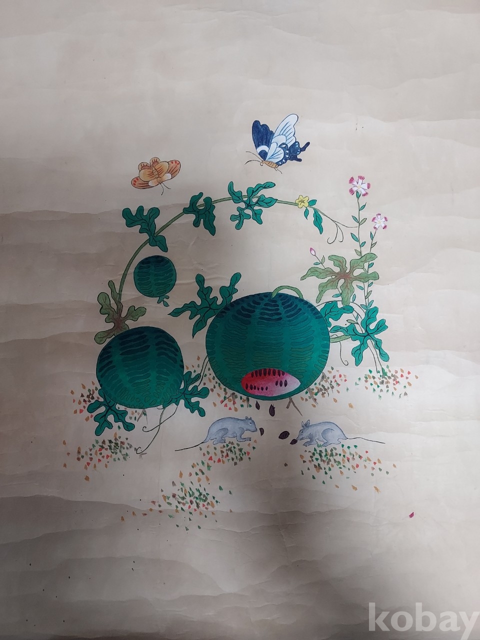 장지에 채색된 실물을 보면 오래된