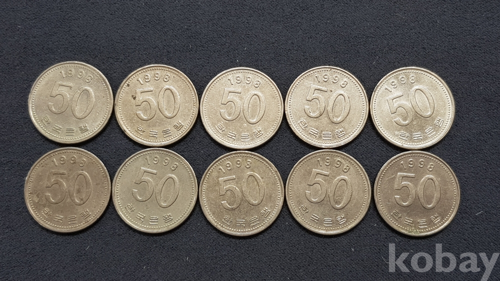*천원경매* 특년도 1998년 50원 / 50주 사용제 10점 일괄 [ 화폐 / 주화 / 현행주화 / 한국은행 ] #55(주)-1017 #HH #CO