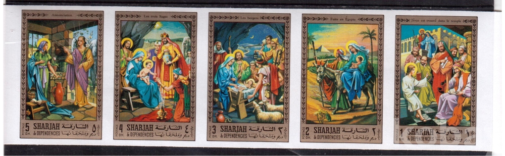 (예수) 샤르자 예수의 생애 무공 5 strips MNH