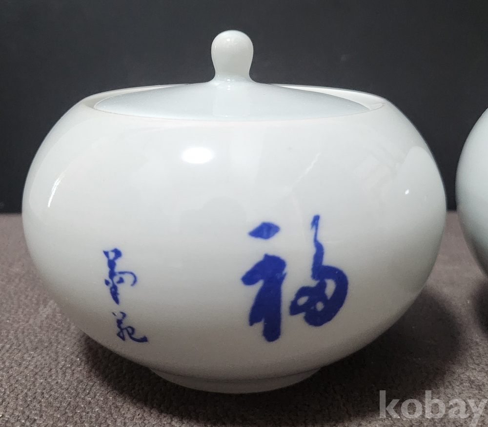 완송(完松) 유선영 作品 백자수복문차호 白磁壽福文茶壺 < 2개 세트 作品 >