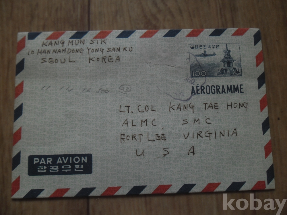 사용실체: 100환 항공우편