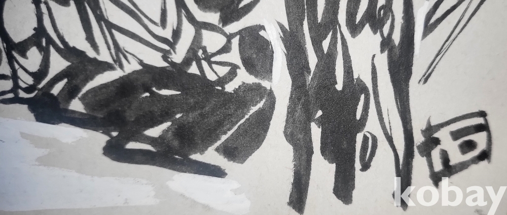 물과 먹으로 만 직접 그려진 수묵화 삽화입니다,