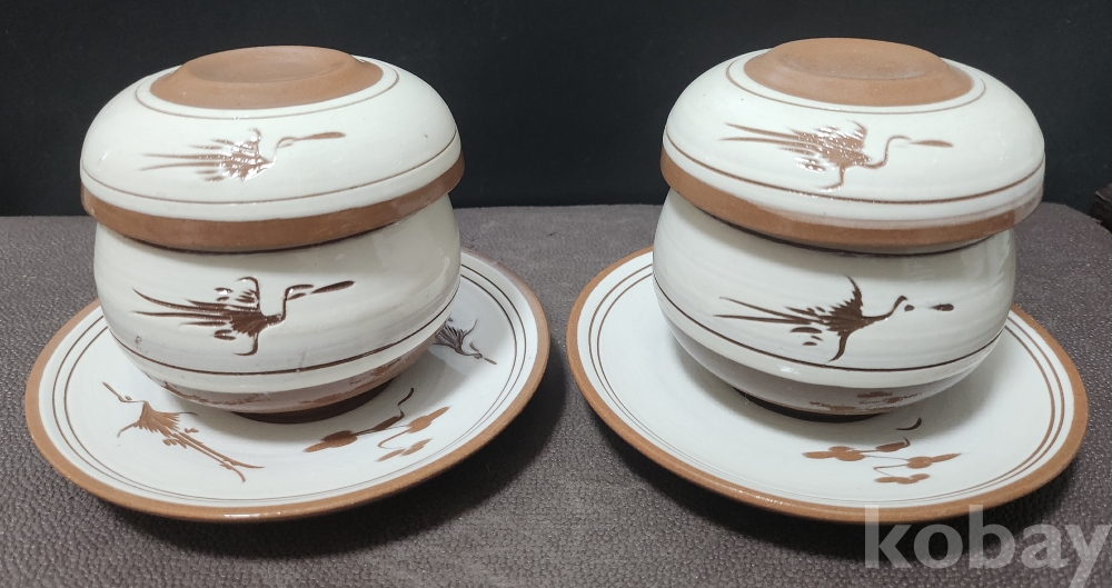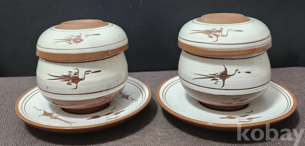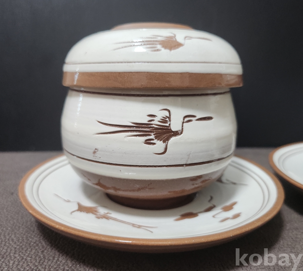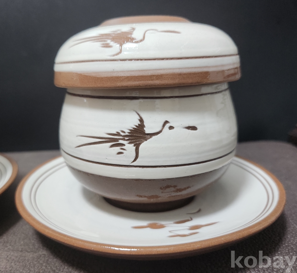 분청음각운학문다기 [粉靑陰刻雲鶴紋茶器] < 미사용 작품 >