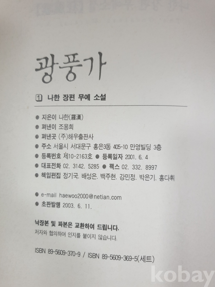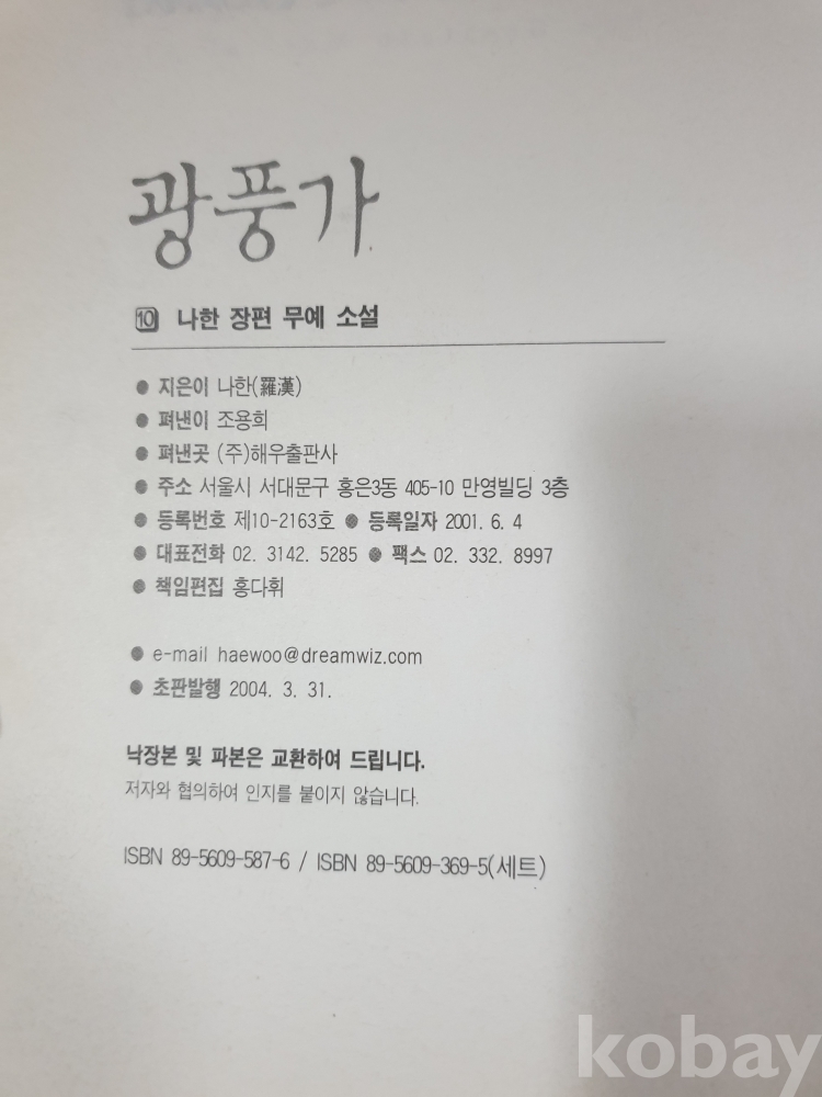 {천원경매} 10-2048 광풍가소설 (1-10권, 묶음배송불가, 착불로배송됨)