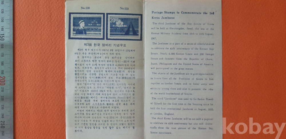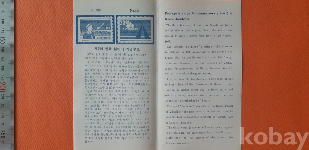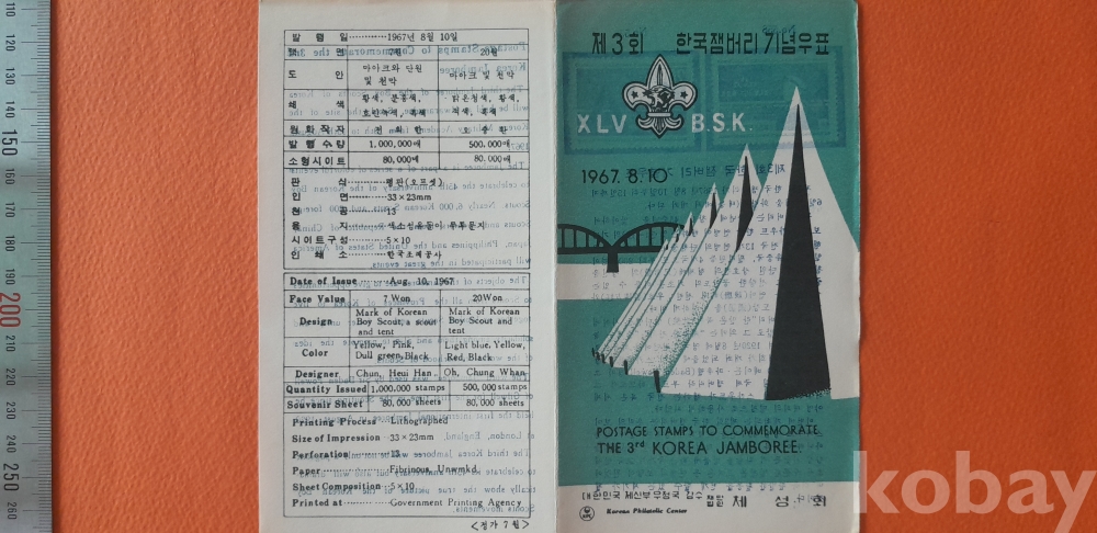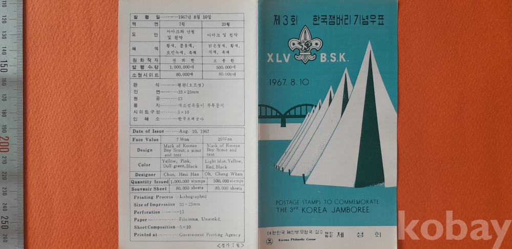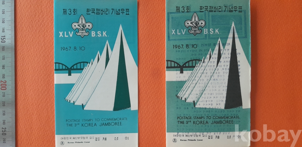 1967년 8월 10일 발행 제3회 한국잼버리 기념 서로 다른 용지 안내카드 2매 입니다.